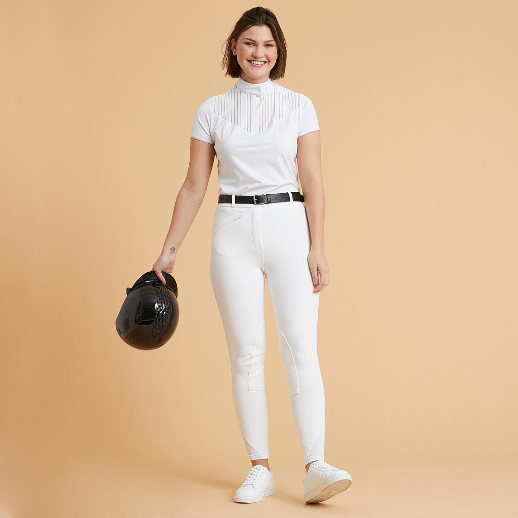 חולצת פולו לרכיבת סוסים לילדים - לבן