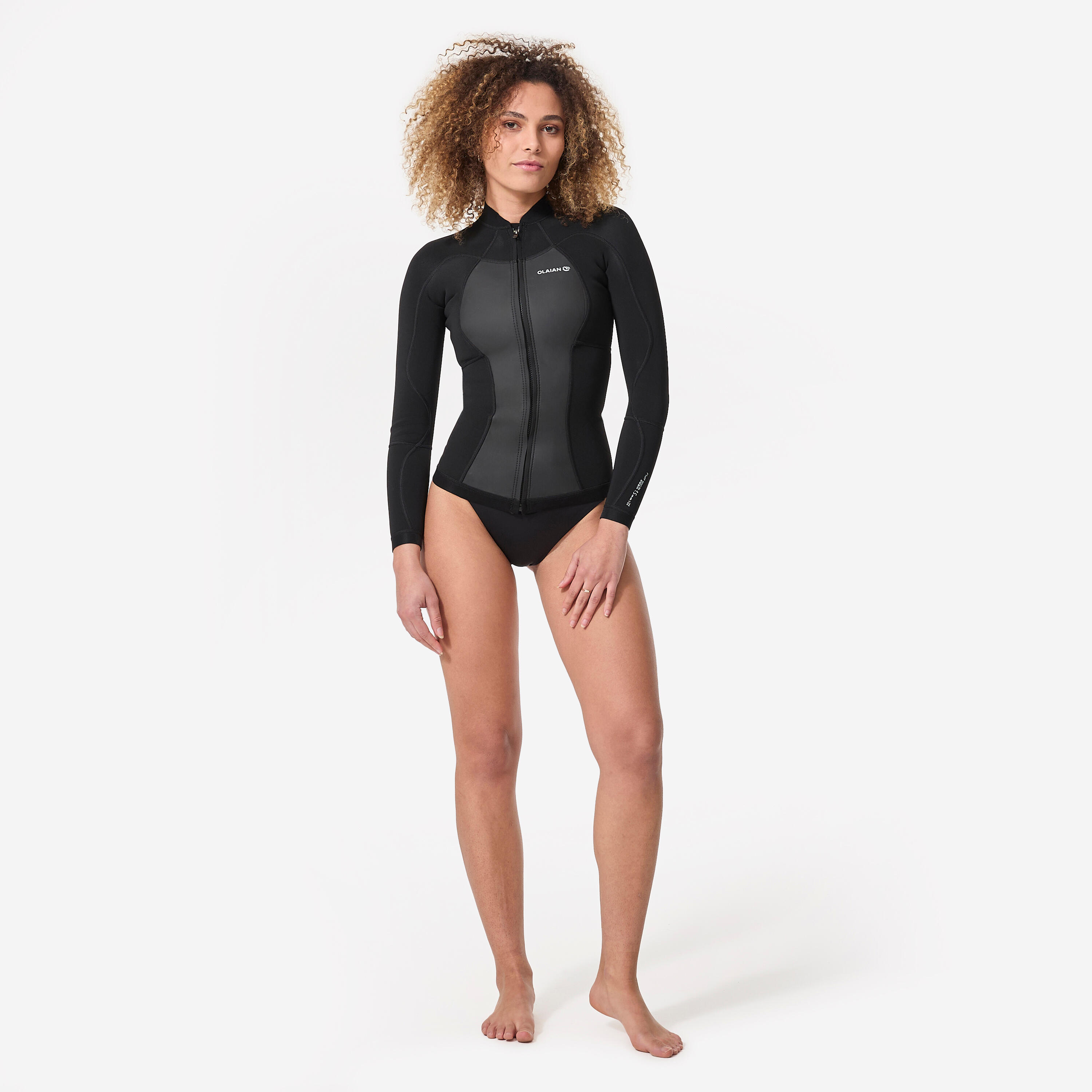 ג'קט ניאופרן שחור עם שרוולים ארוכים וקצף 1.5 מ"מ, מיועד לשימוש במים בטמפרטורה של 22 מעלות צלזיוס ומעלה.שלב מתקדם.משך האימון: עד 3 שעות.