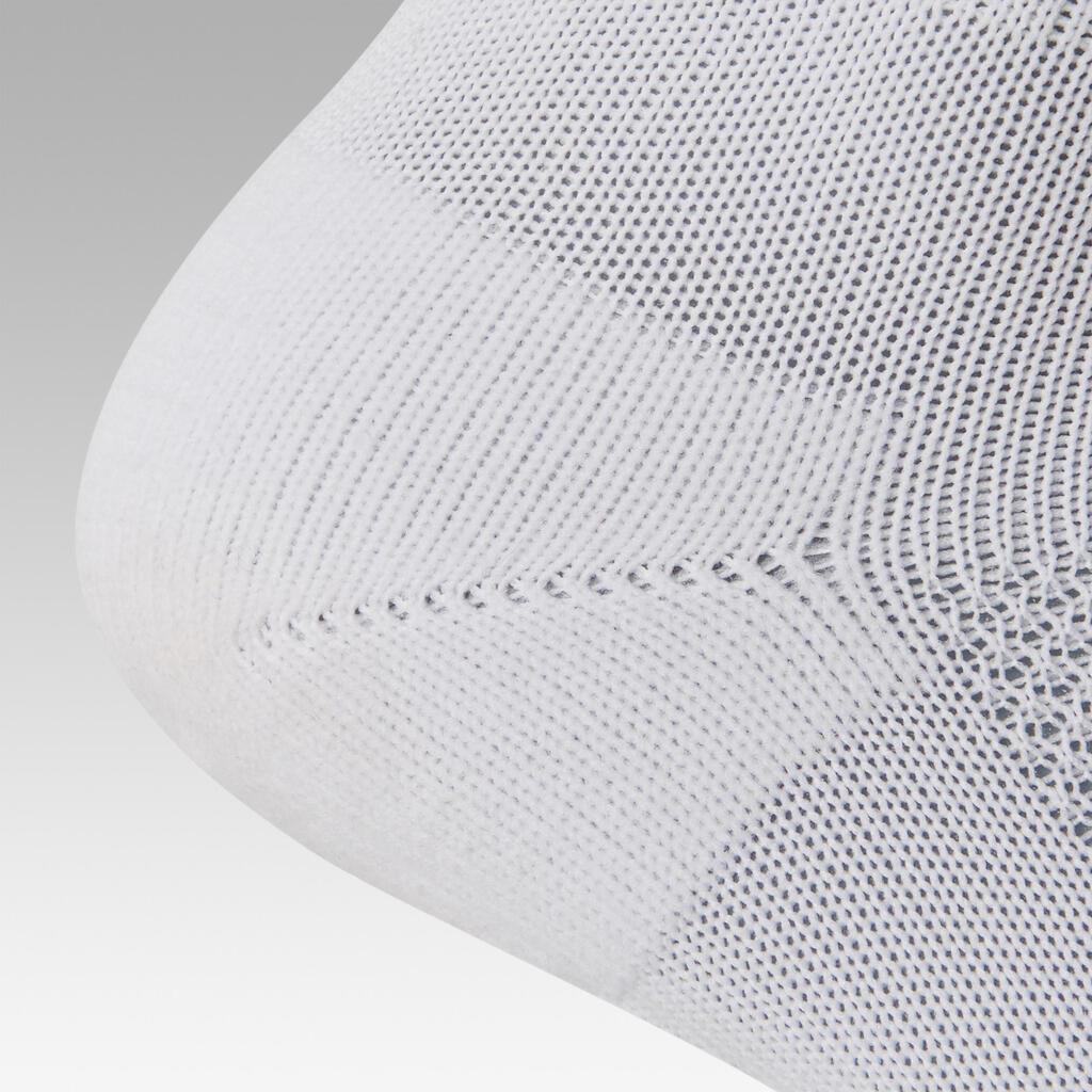 יצרנו את גרבי הכדורגל F100 האלה כדי לתת דחיפה לחוויות הראשונות שלכם על המגרש עם אזור מאוורר בחלק העליון של כף הרגל לנשימה נוספת.