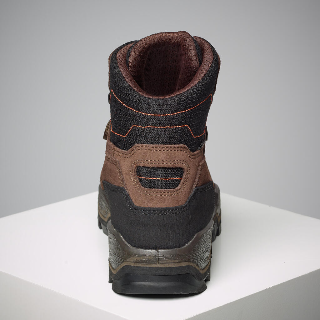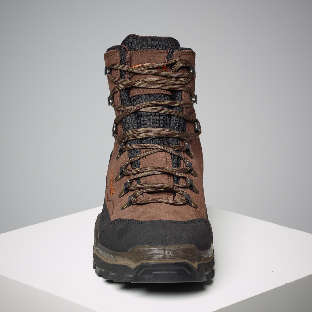 כולנו מעדיפים מגפיים שלא נשחקים לאחר שלושה מסעות בלבד.המגפיים כוללות הגבהה מעור מפוצל בעובי 1.8 מ"מ, מה שהופך אותם לעמידים יותר.החלקים התחתונים (בוהן, עקב ודפנות) מכוסים במגן אבן סינתטי שיכול לעמוד בכל סוגי הכיסויים.הסוליה החיצונית עשויה משני חומרים והניטים שלה עמידים בפני שחיקה.אין ספק:אפשר ליהנות מהמגפיים האלה בכל מסעות הציד למשך זמן רב!