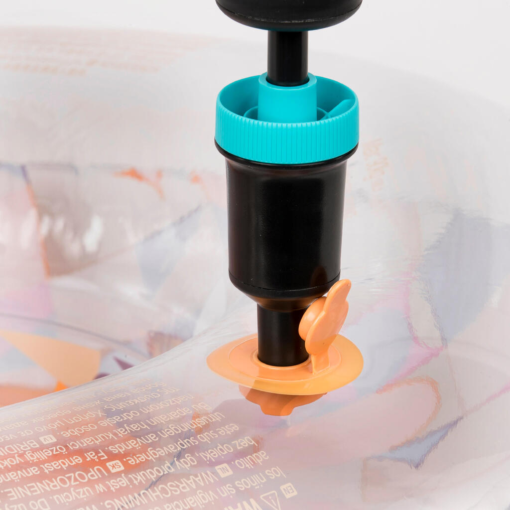 השסתום החדשני מאפשר ניפוח מהיר של גלגל השחייה המתנפח הגדול הזה. שתי הידיות מעניקות אחיזה חזקה והנפח הגדול משפר את היציבות..