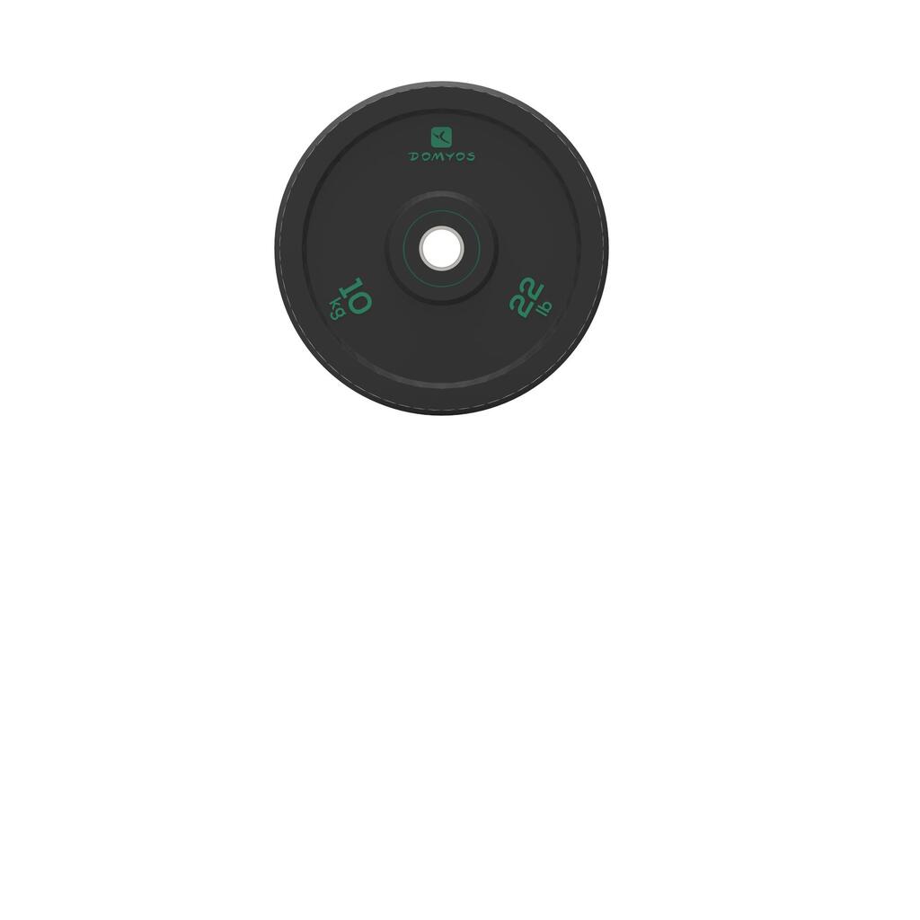 דיסק במשקל 10 ק"ג, קוטר פנימי 50 מ"מ וסימון צבע (ירוק).