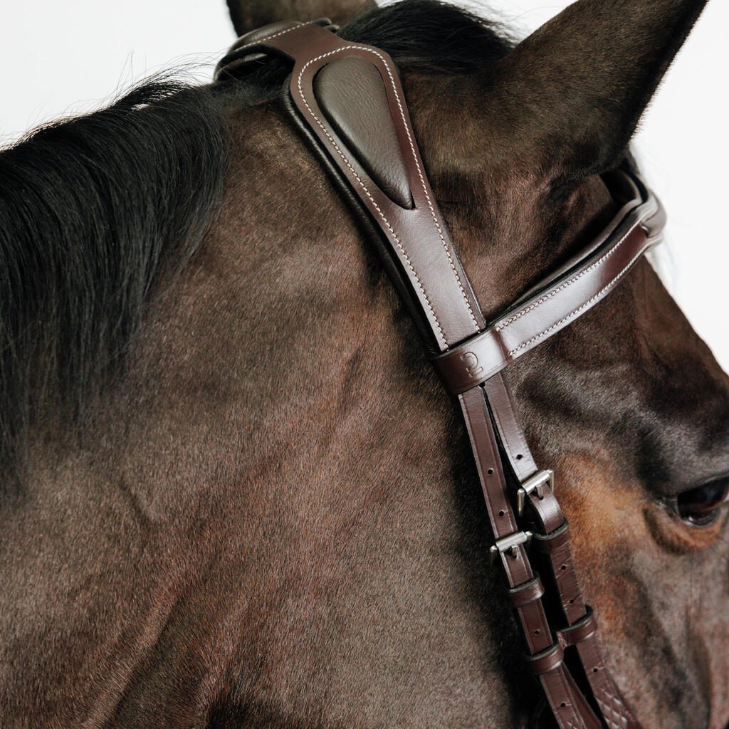 הראשייה נמכרת ללא מושכות.תוכלו למצוא את מושכות האחיזה 900, שפותחו במיוחד עם ראשייה זו בחנויות שלנו או באינטרנט.המושכות בעלות אותם הפרטים הקטנים, הגימורים וכמובן, אותו צבע עור.