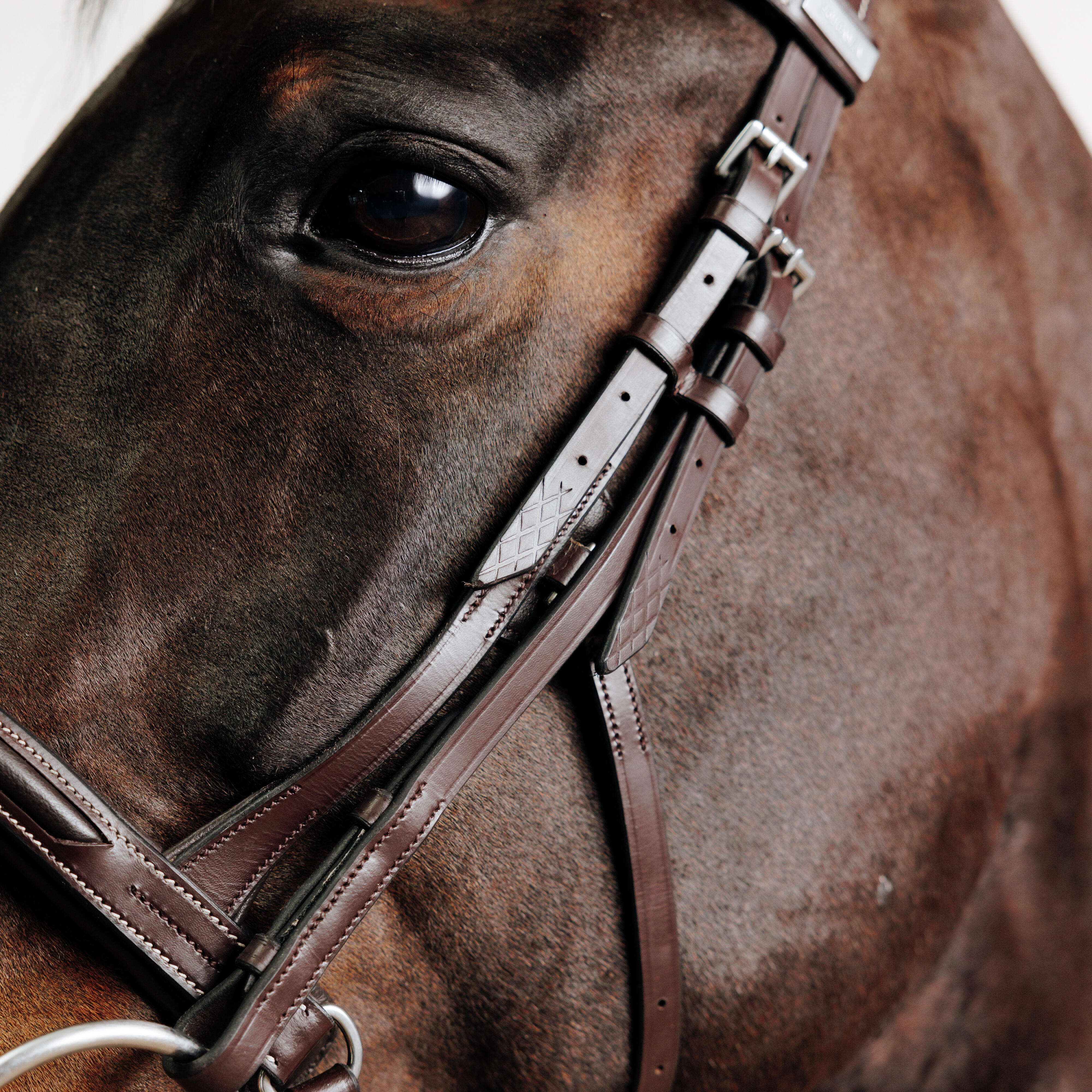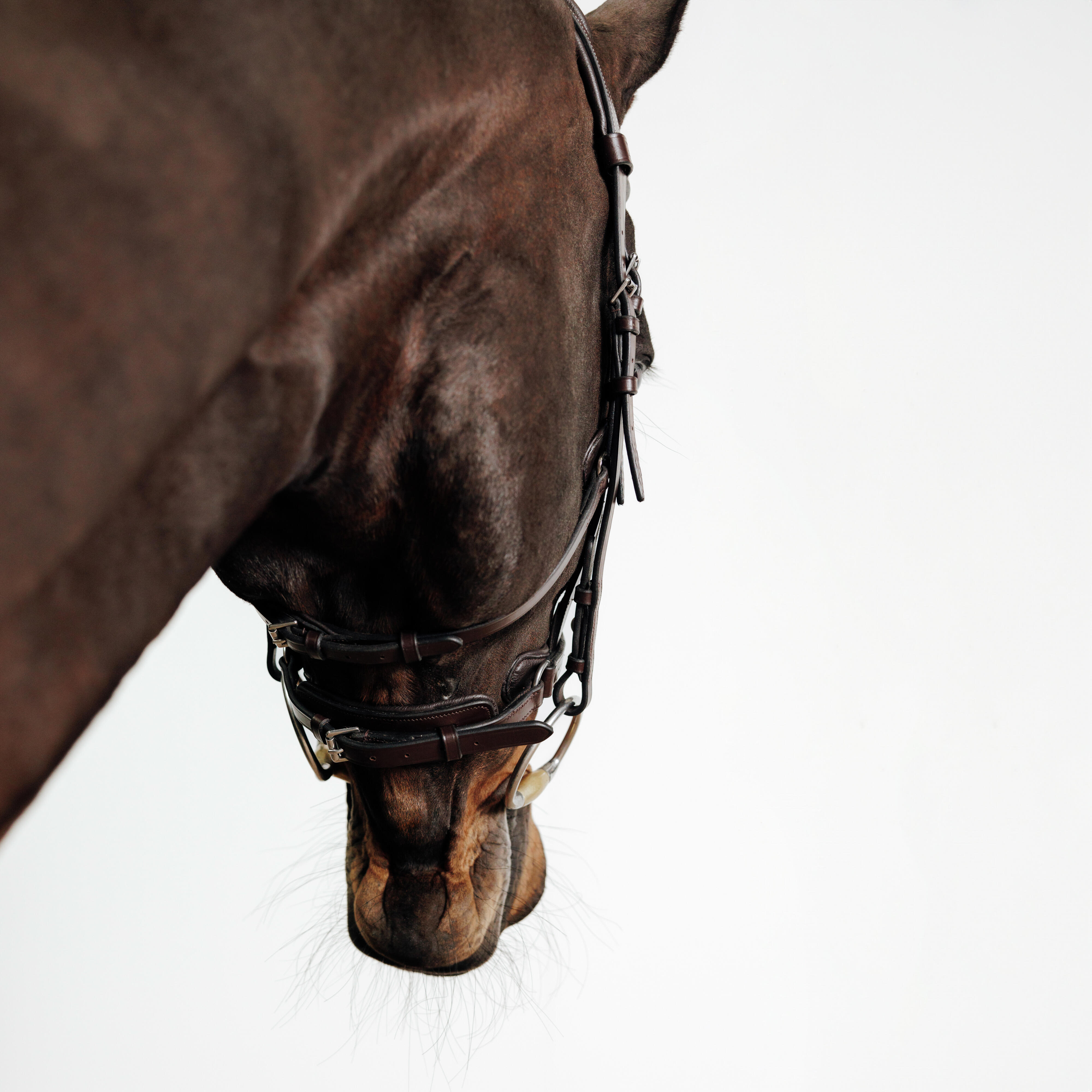 להתאמה של רצועת האף יש השפעה משמעותית על רמת הנינוחות של הסוס.צריכה להיות אפשרות להעביר אצבע בין פני הסוס לרצועת האף ושתי אצבעות בין רצועת האף ללחיים.אם יש לכם ספקות לגבי התאמת הראשייה, פנו לעזרה מקצועית.