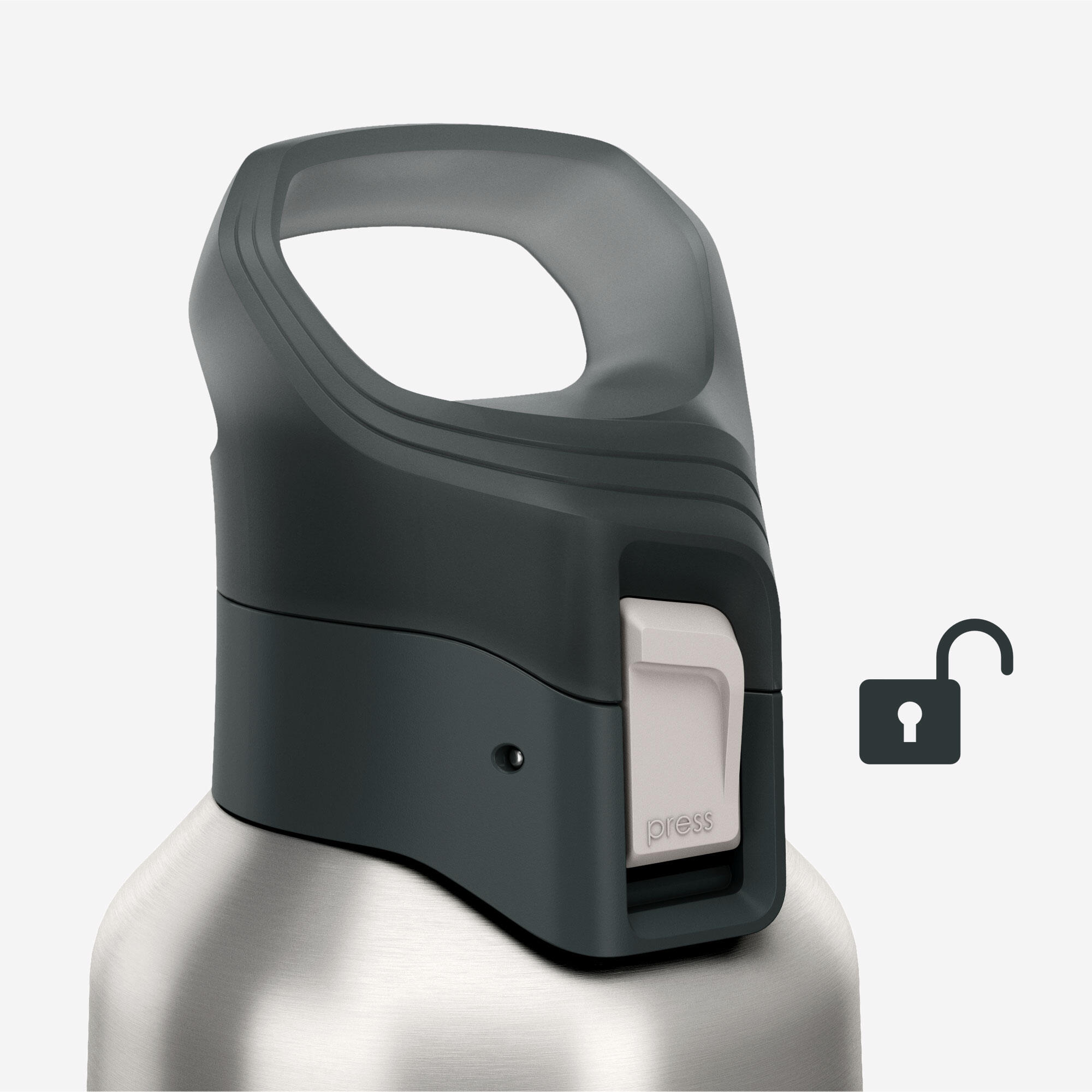 בקבוק נירוסטה קל עם מכסה לפתיחה מהירה. נפח 800 מ"ל, עמיד ומבודד.