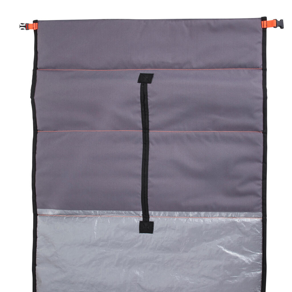 כיסוי לגלשן באורך 221 עד 285 ס"מ ( 7'3 עד 9'4) 5 מ"מ קצף מלמעלה ו-3 מ"מ מלמטה, קל לשימוש ונסגר כמו שקית עמידה למים על ידי גלגול הפתח האחורי.