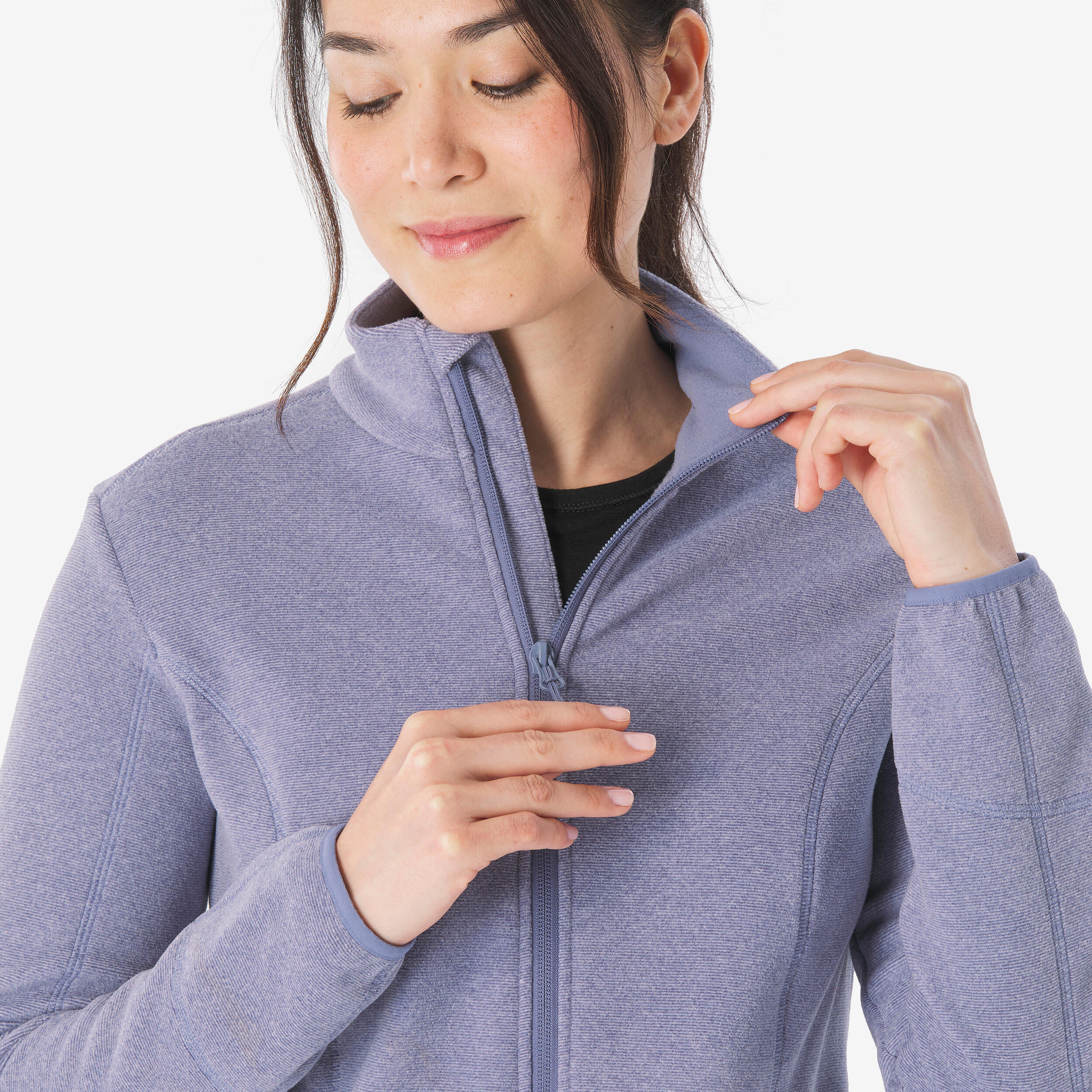 פליז בגזרה החובקת את הגוף, אבל לא צמודה מדי. להגנה טובה יותר מהקור, מומלץ ללבוש מתחת לפליז שכבת בסיס עם ביצועים תרמיים שתבוא במגע ישיר עם העור. מיועד גם כפריט לבוש תחתון מתחת למעיל חסין רוח/גשם, כמו המעיל לנשים MH100.