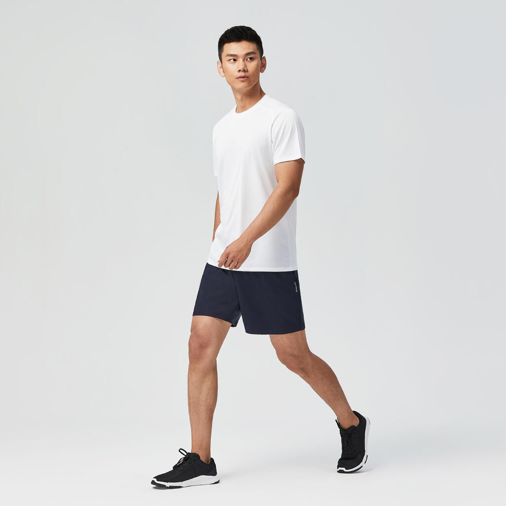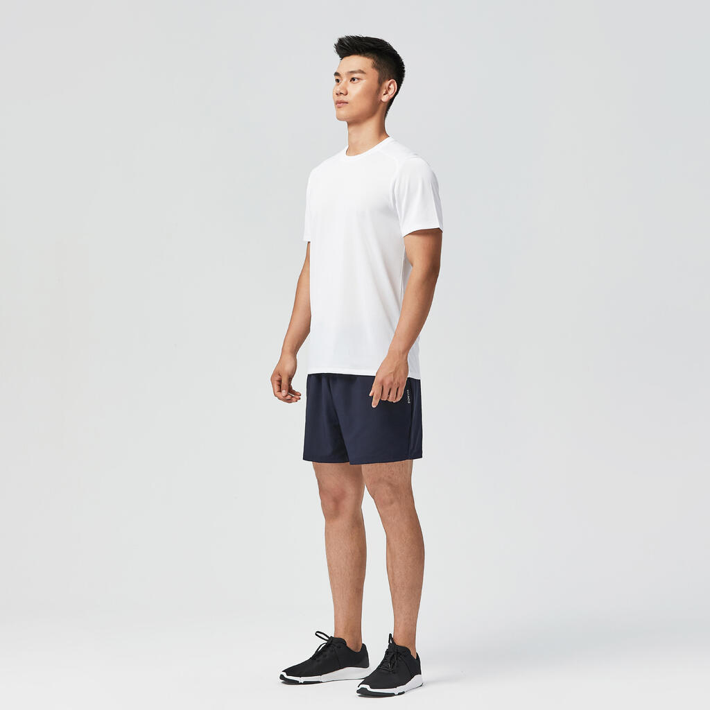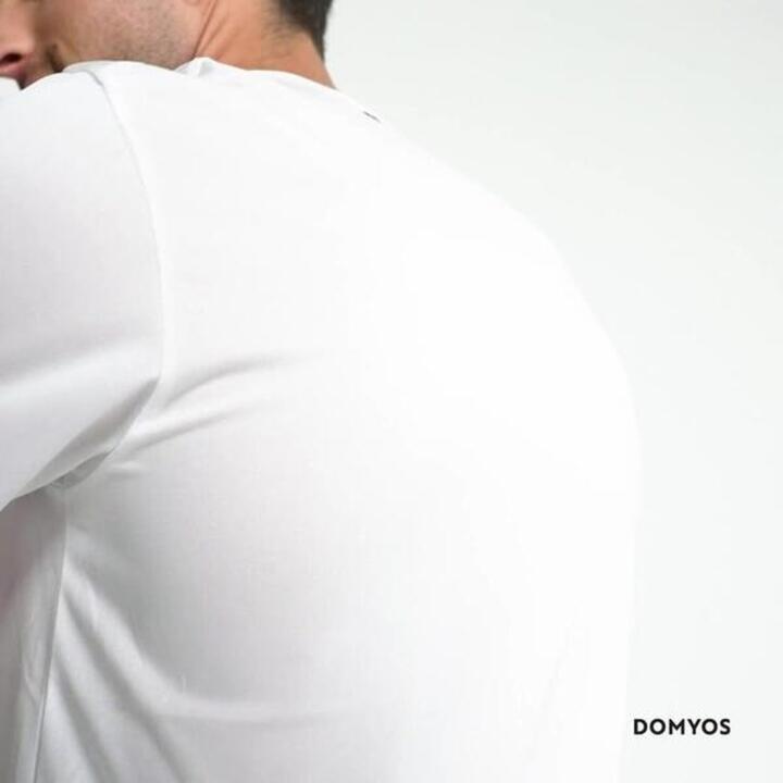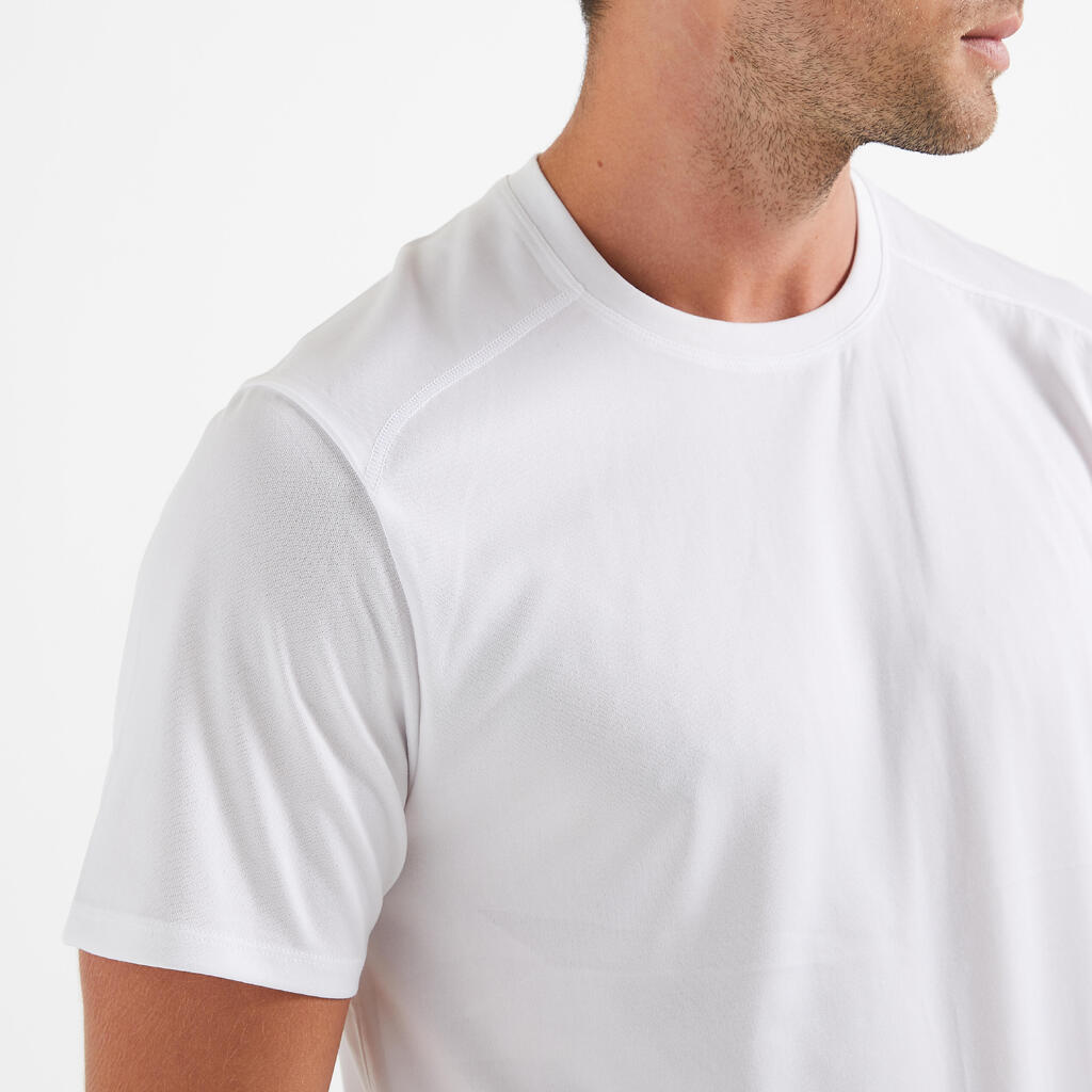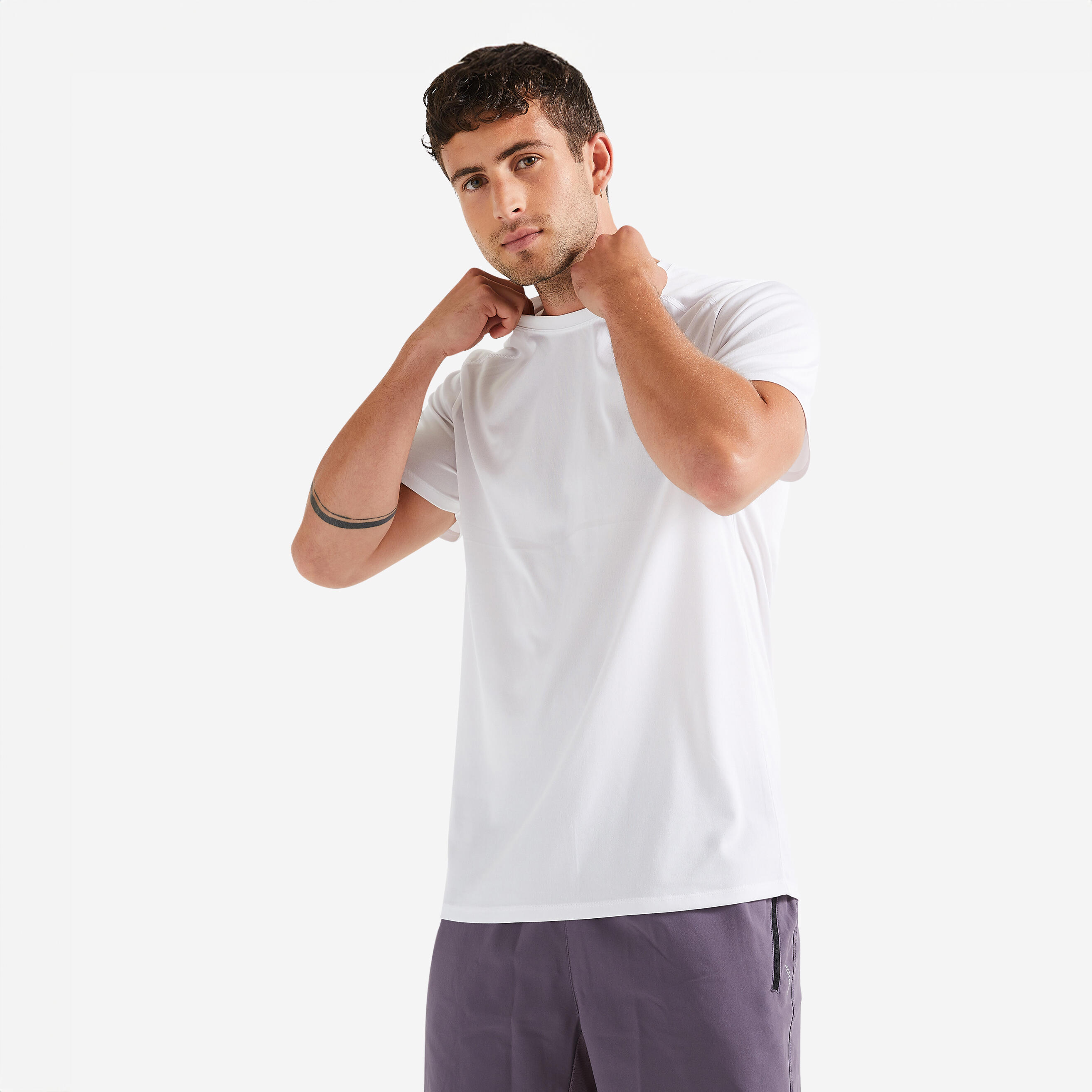 חולצת כושר עם צווארון עגול מבד נושם לגברים, דגם Essential - לבן