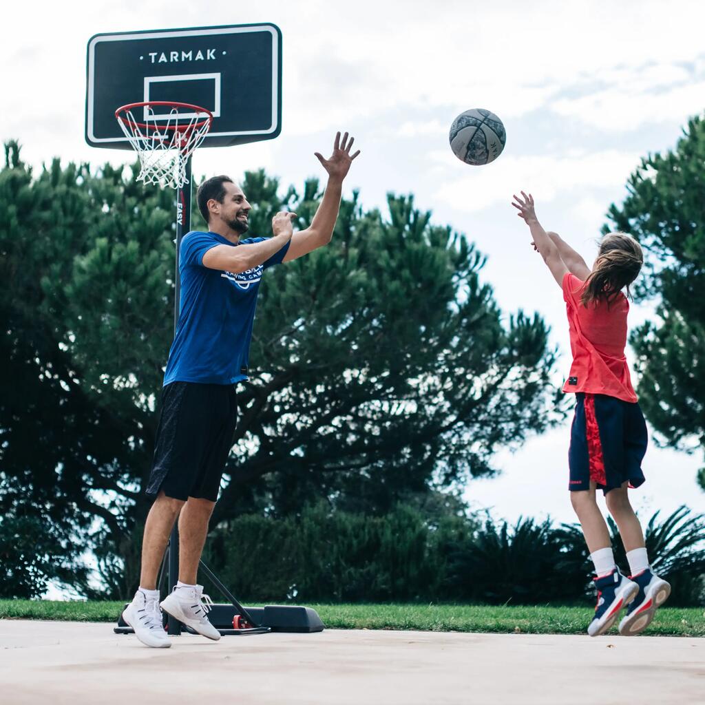 סל כדורסל B100 המתאים לילדים ומבוגרים שמשחקים כדורסל בחוץ.התאמה ללא כלים ל-5 גבהים הנעים בין 2.20 מ' ל-3.05 מ'.