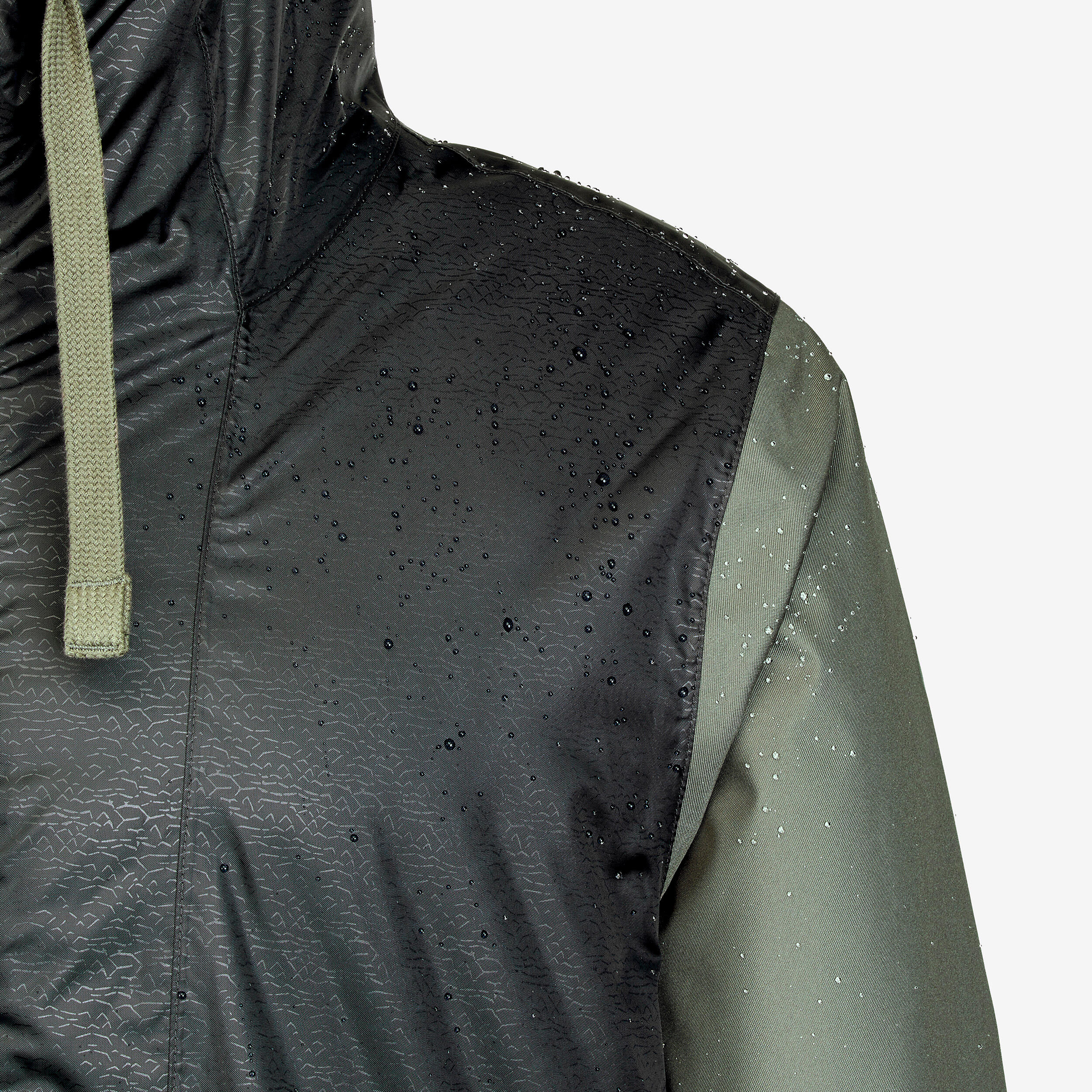 עמידות המים של המעיל אינה מוגבלת רק למרכיביו:טכניקת ההרכבה של החלקים השונים היא גם קריטריון הערכה.בין אם הוא אטום בחום או תפור ואז אטום למים, האטימות הכוללת של המעיל נמדדת באמצעות מבחן מקלחת שפותח על ידי Decathlon, המדמה גשם בעוצמות שונות.ככזה, המעיל העמיד למים יגן עליכם מפני גשם קל, כלומר 3 ס"מ של גשם ב-30 דקות.