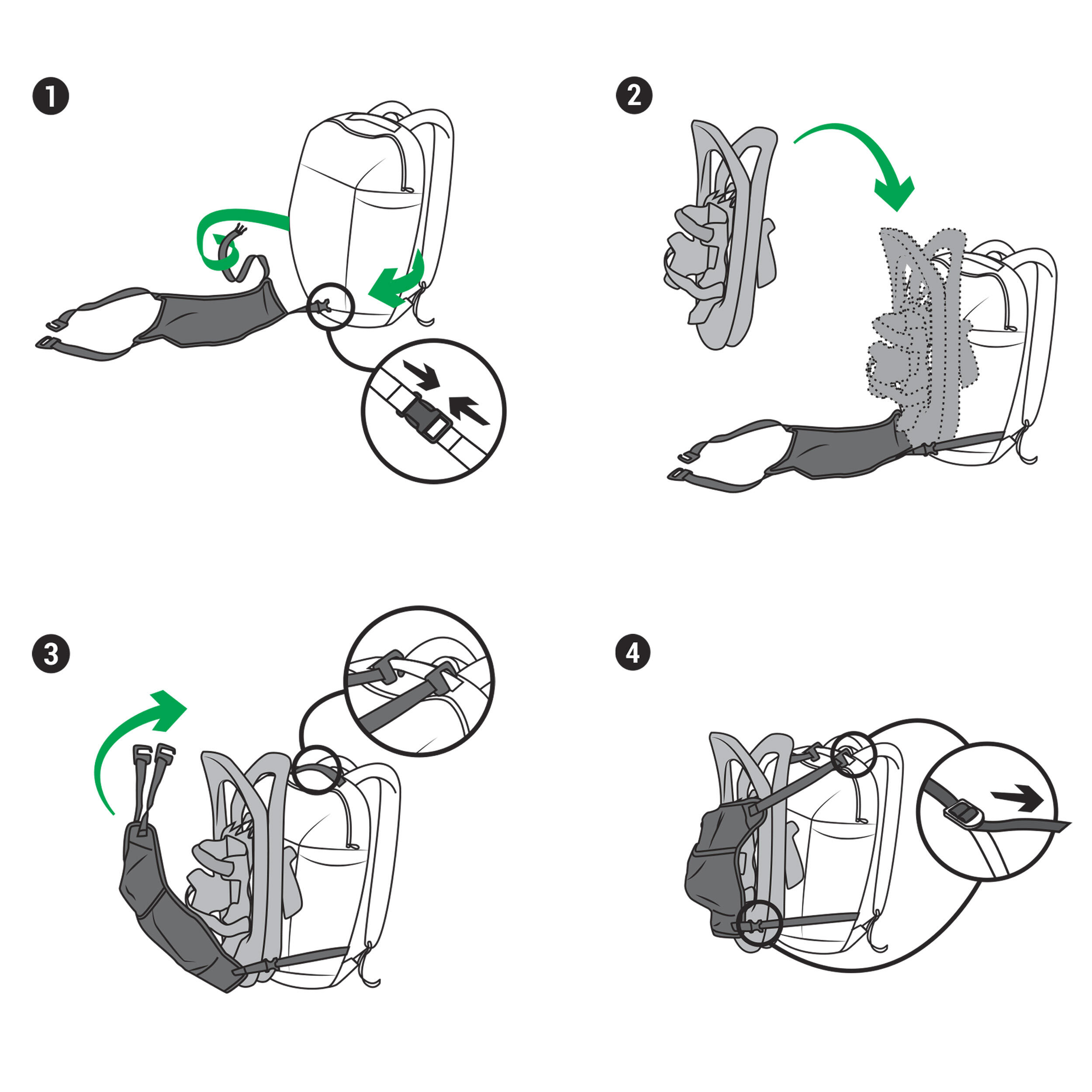 ערכה חכמה וקומפקטית שמאפשרת למקם את נעלי השלג על כל תיק גב (נפח: 15-40 ל') לנשיאה נוחה.