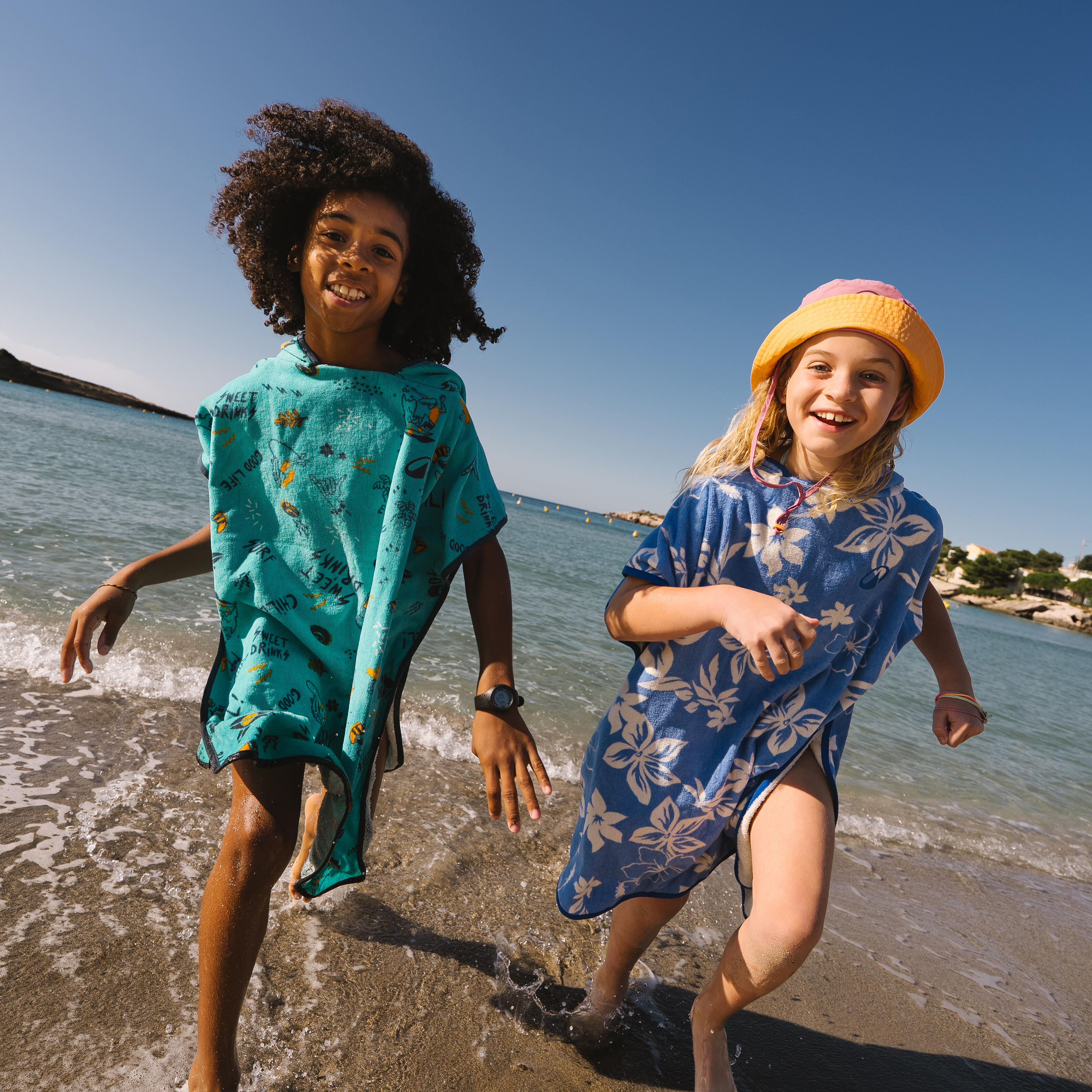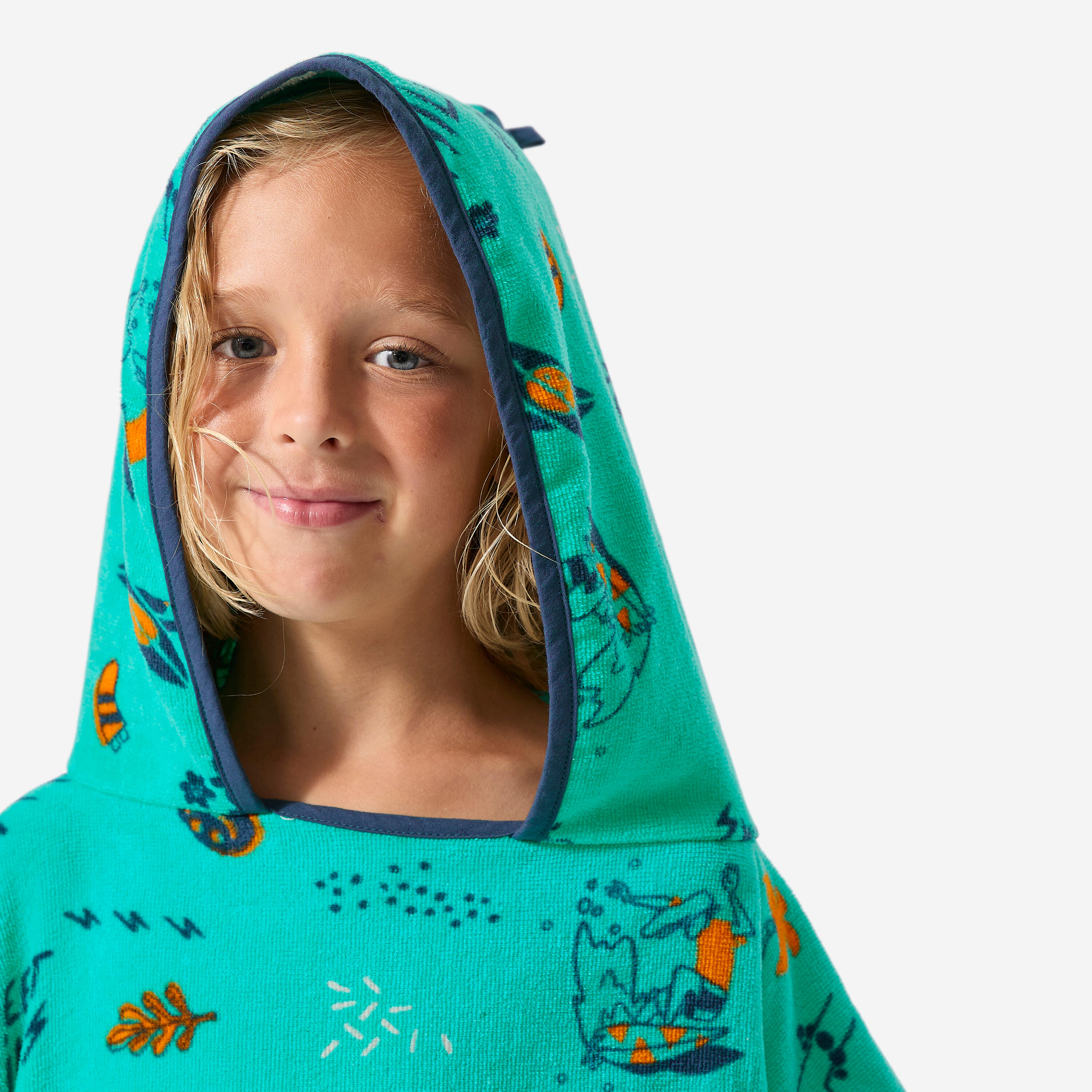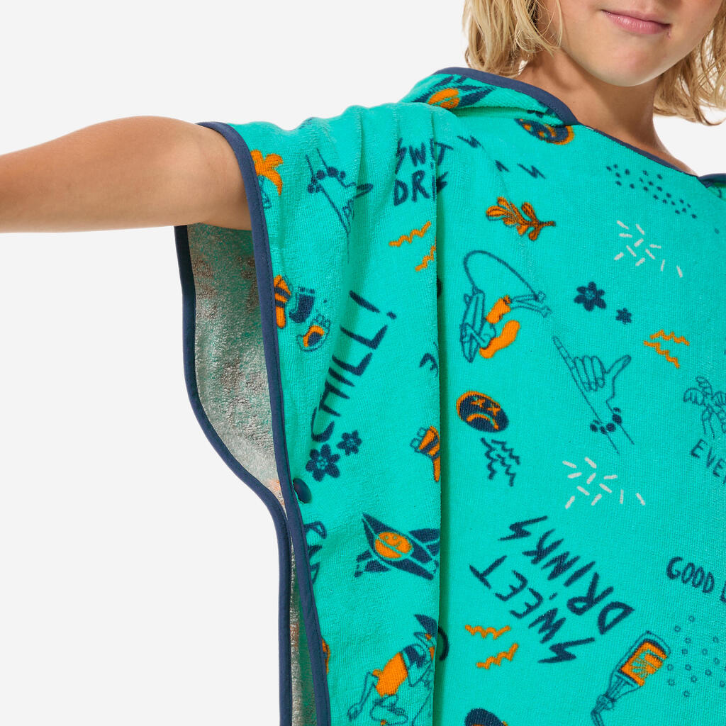 המעצבים שלנו פיתחו את מגבת הפונצ'ו הזו לגולשים צעירים שגובהם 110 ס"מ עד 135 ס"מ לייבוש והחלפת בגדים לפני ואחרי האימון.