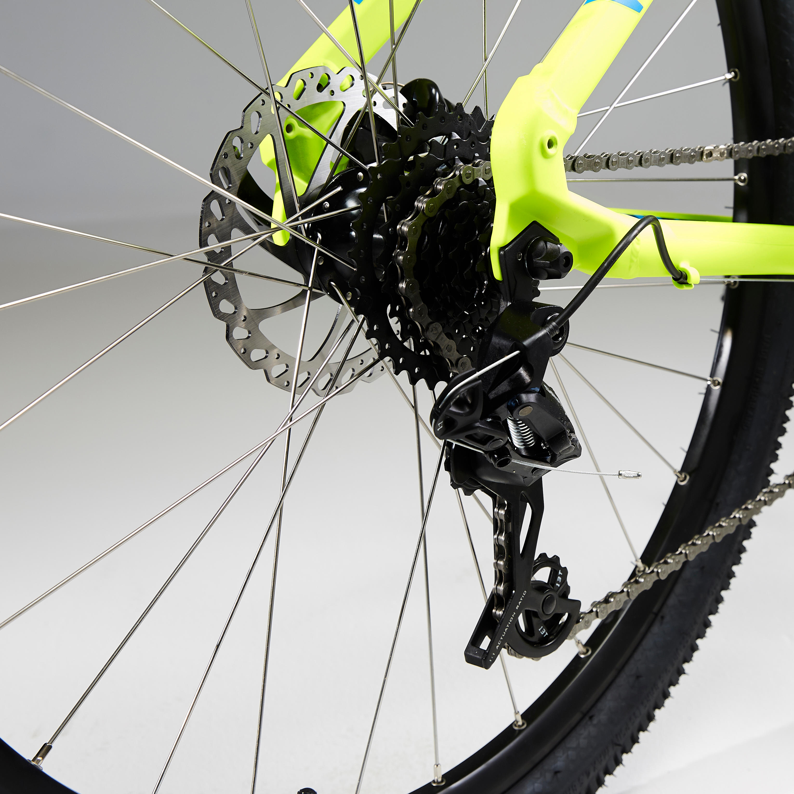 למשקל נמוך יותך ולדיווש יותר יעיל, שלדת ה-Rockrider 520 עוצבה עם 6061 אלומיניום (רק 1.9 ק"ג במידה M.9). הציר המרכזי הנמוך מסייע לך לשמור על יציבות בפניות.