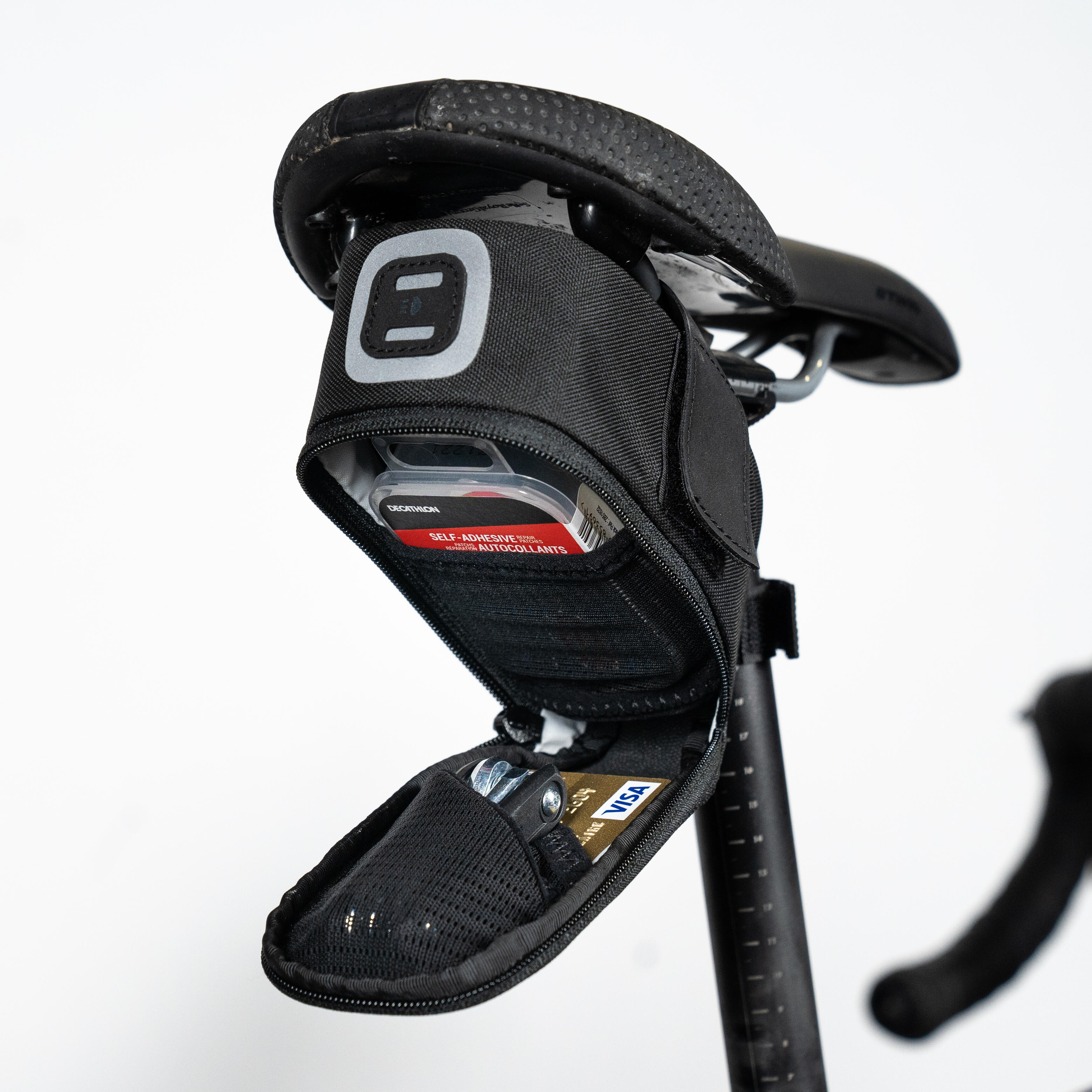 עוצב לנשיאת חפצים חיוניים לתיקון האופניים וחפצים אישיים קטנים אחדים.