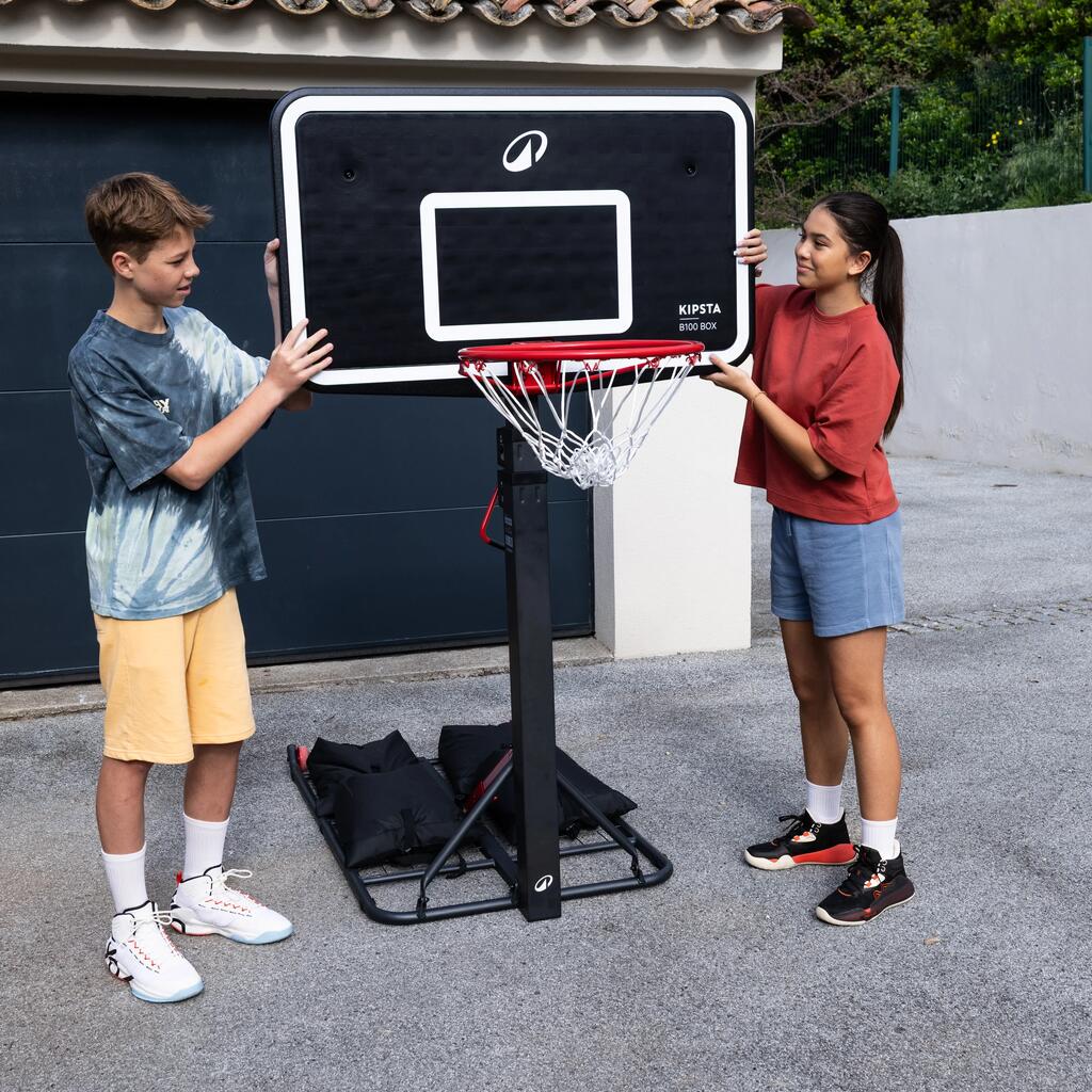 טכנולוגיית BOX היא חידוש של Tarmak עם מטרה אחת:יש לאחסן בקלות את הסל לאחר השימוש כדי לפנות מקום.ההבטחה של B100 BOX:להקים ולקפל אותו בפחות מדקה אחת.העמוד מתקפל ונוטה, ואילו את הלוח האחורי אפשר להסיר ולאחסן מתחת לכיסוי המגן לאחסון קל. בנו מגרש משחקים משלכם מבלי להעמיס את הגינה שלכם.