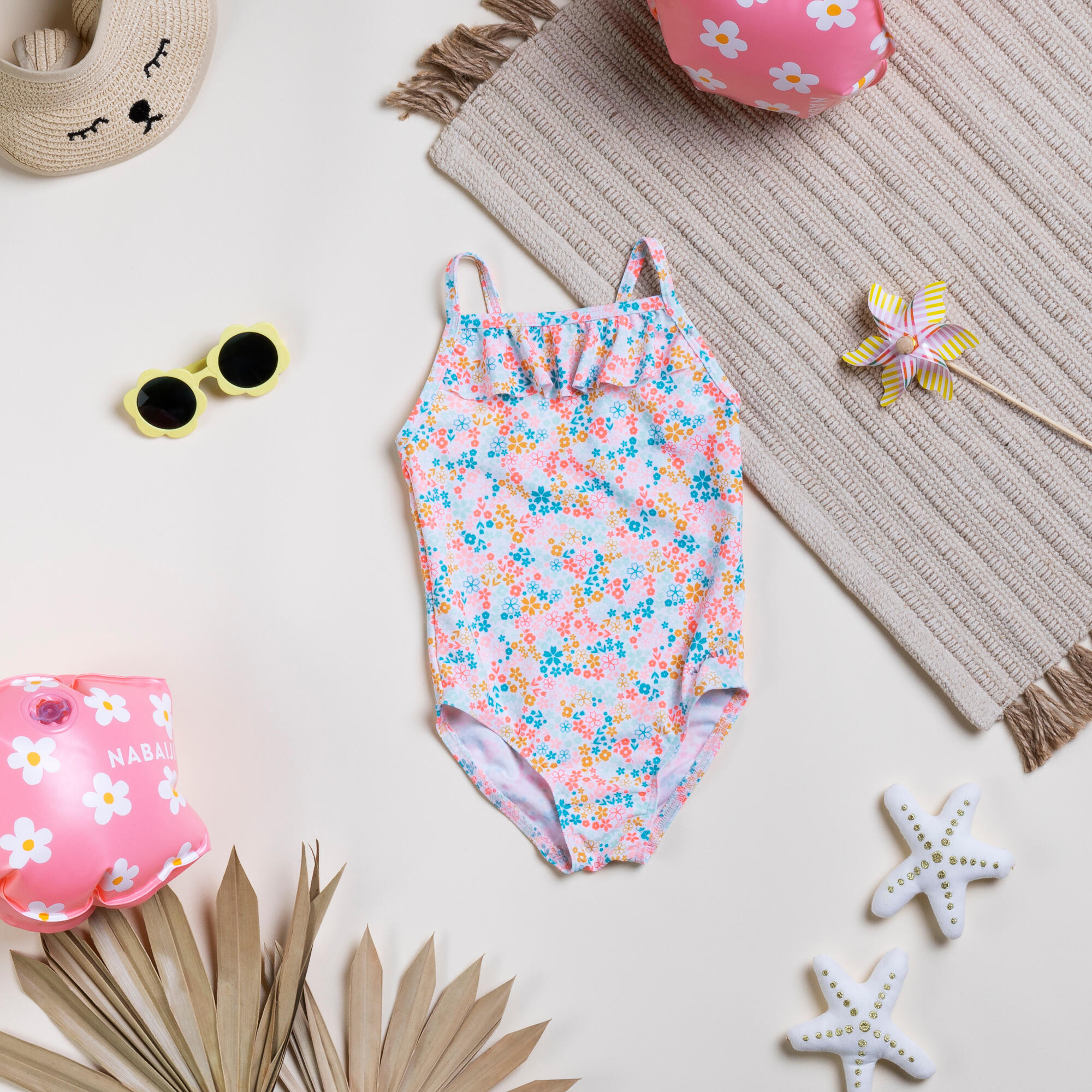 בגד ים שלם מקורי וצבעוני שמתאים לילדות קטנות לגילוי הנאות המים, בבריכה או בחוץ.