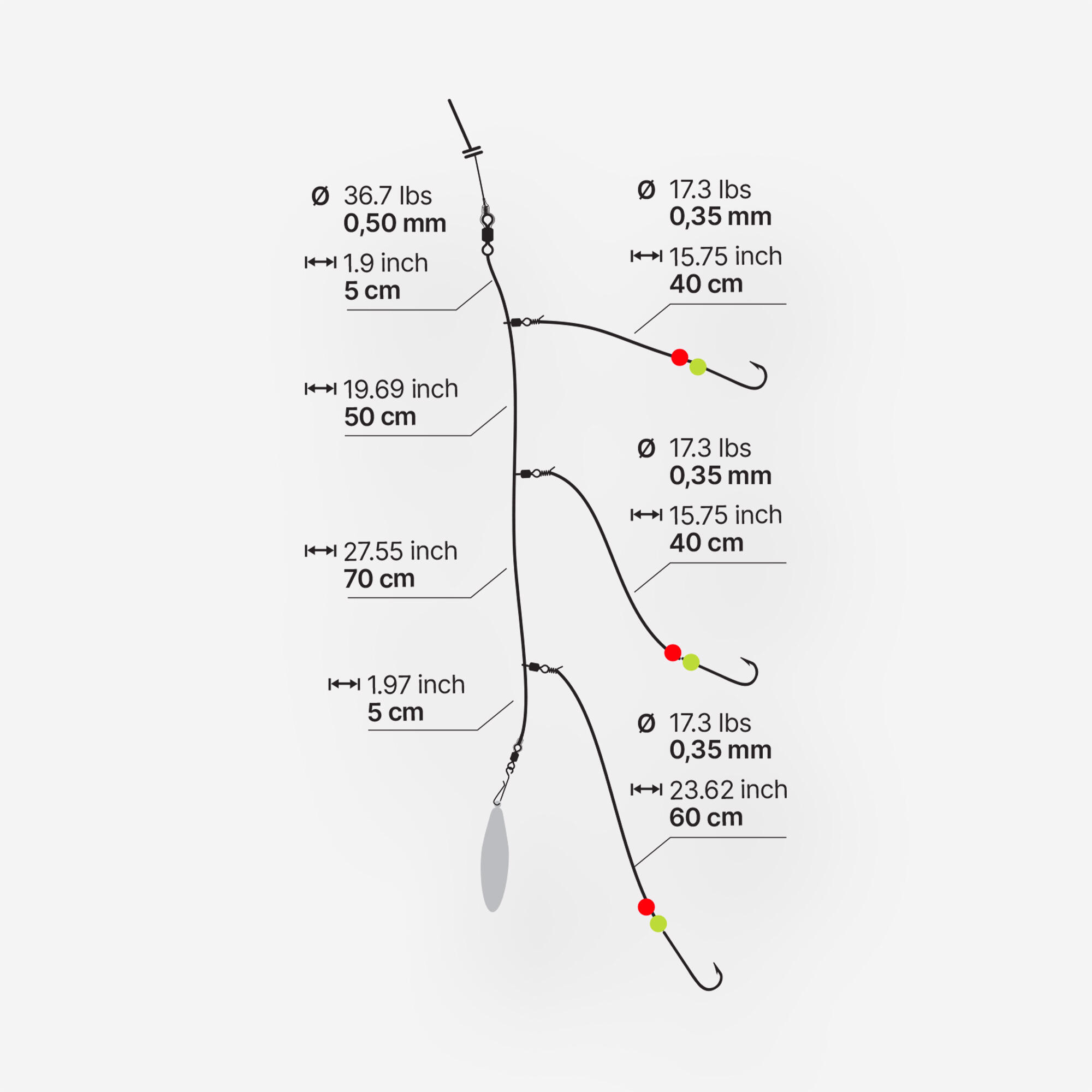 לידר חוט בעל שלושה קרסים לדיג בים או דיג פיתיונות מהחוף לדגים נורדיים.