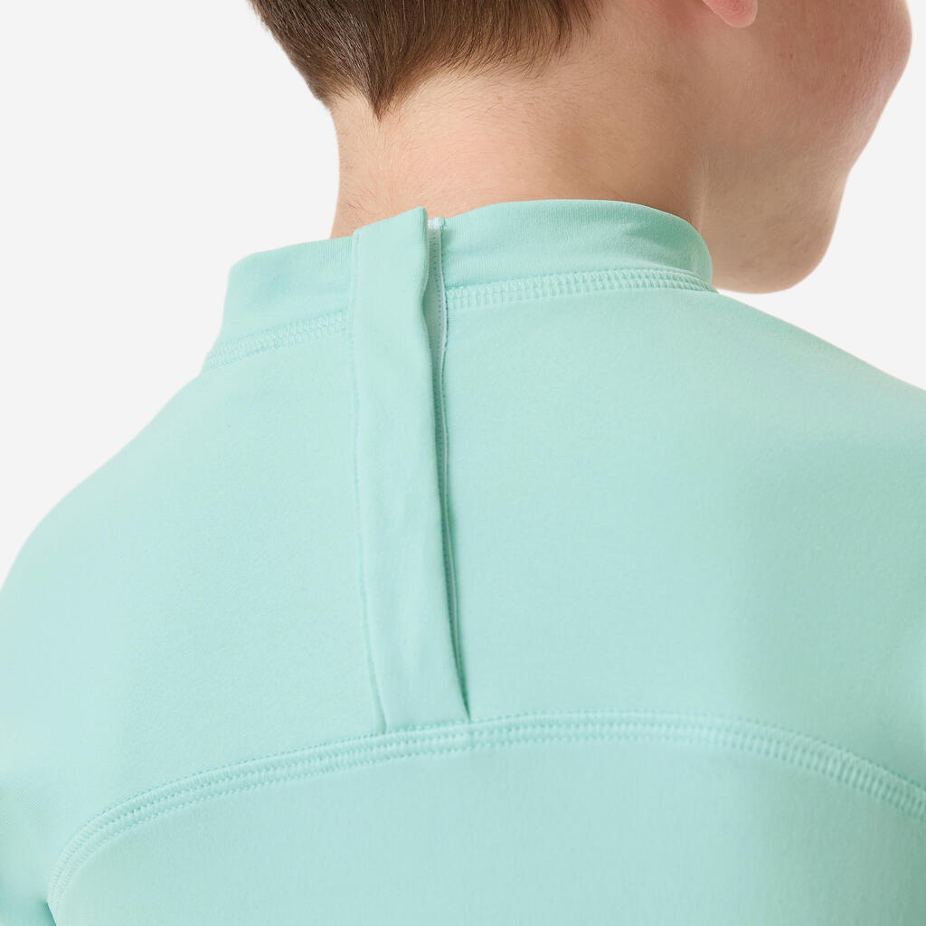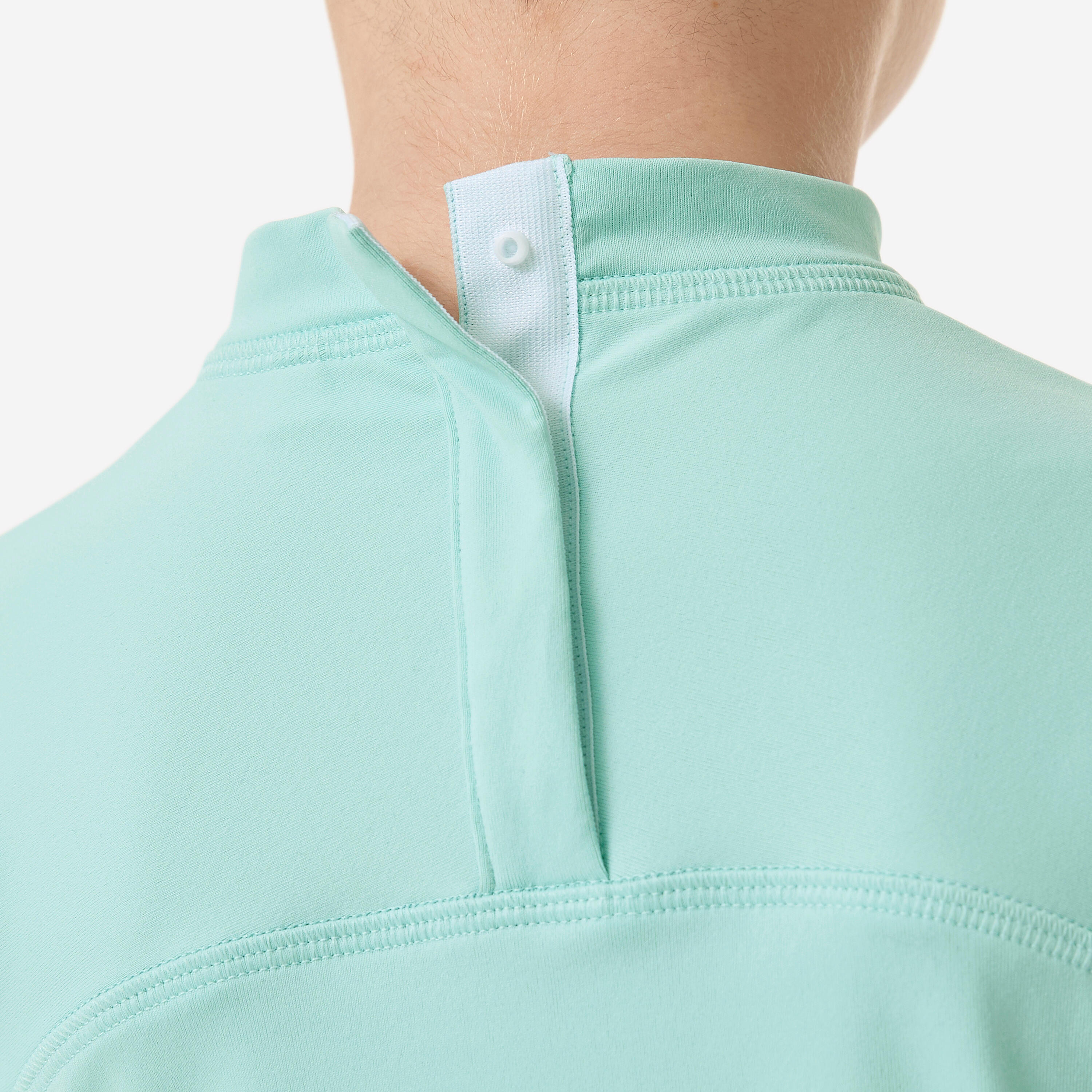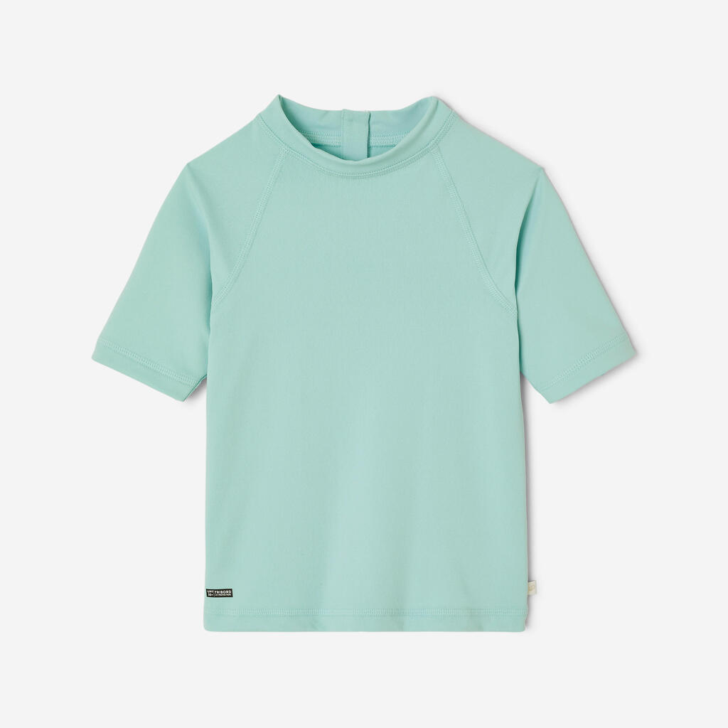חולצת גלישה קצרה בעלת הגנה מפני קרינת UV. לבישה קלה דרך הראש עם תיקתקים מאחור.