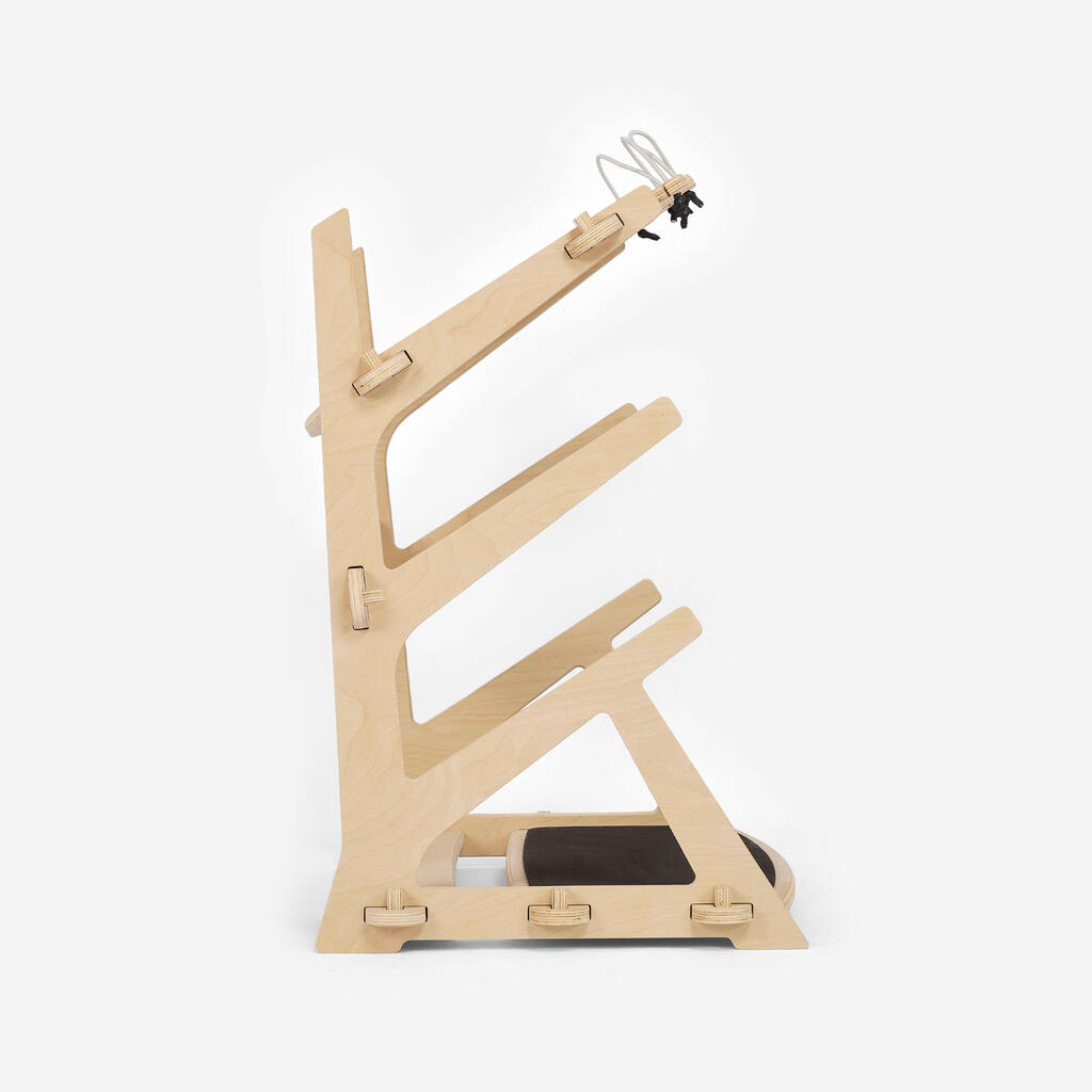 המתלה שלנו מיוצר מעץ ליבנה לבוד בעובי 18 מ"מ. כהגנה נוספת, הענקנו לו טיפול מקדים בעזרת שכבת לכה. כדי להאריך את חיי המתלה, מומלץ למרוח ציפוי מגן מדי פעם, לפחות פעם בשנתיים (יש להשתמש בלכה לשימוש חיצוני/עם חרירים קטנים/לכה שמכילה פיגמנט).