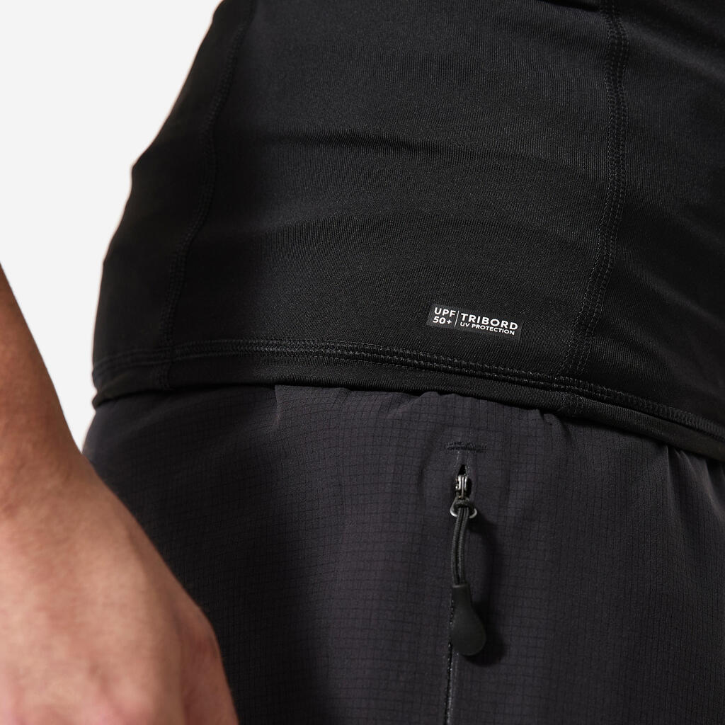 חולצת גלישה קצרה עם הגנת UV לגברים - שחור