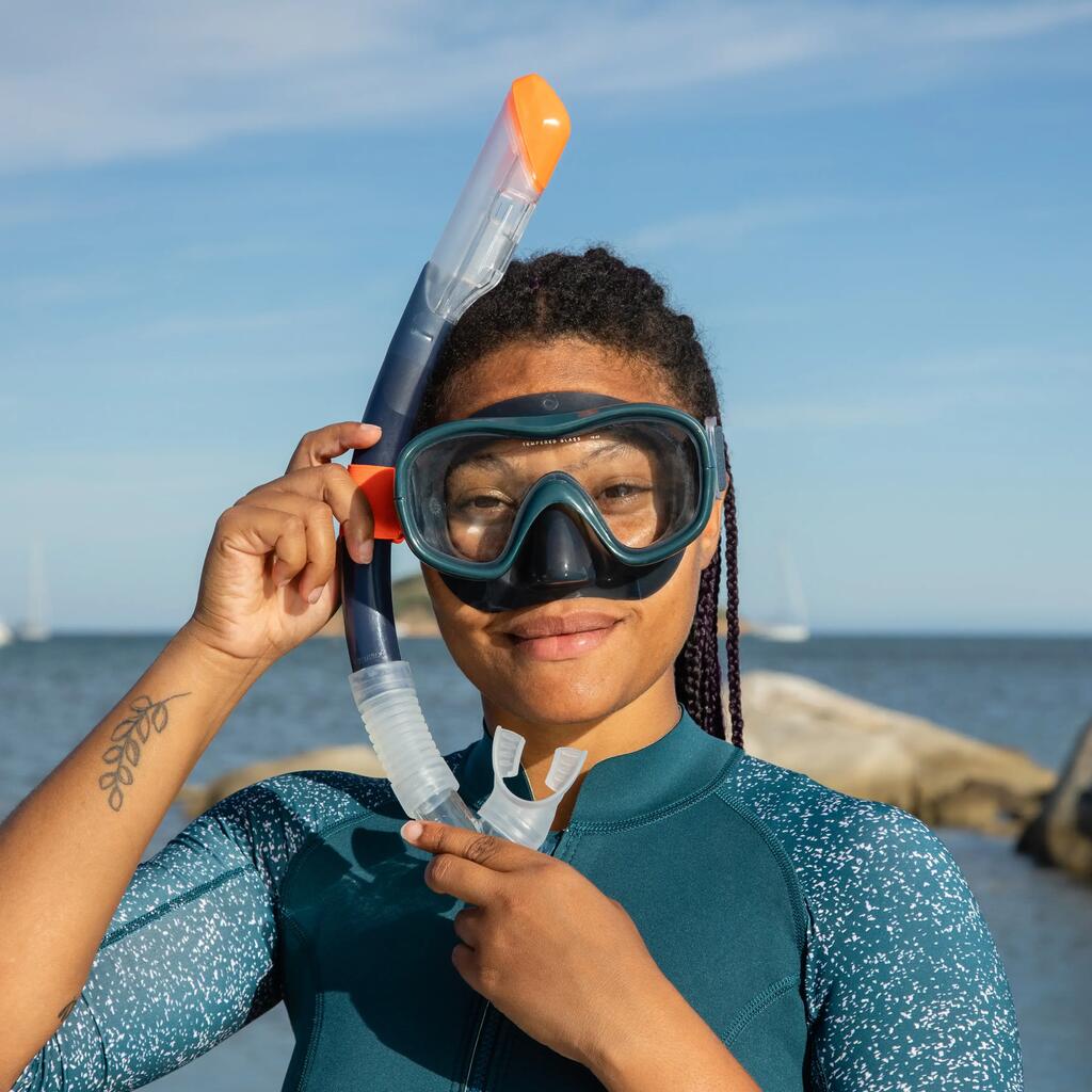 שנורקלינג היא פעילות קלה ומהנה לכל המשפחה!נשימה דרך שנורקל תובענית יותר פיזית משחייה רגילה.אם אתם חשים עייפות, קוצר נשימה או סחרחורת, יש להסיר את המסכה והשנורקל ולצאת מהמים.השימוש במוצר זה אינו מומלץ אם אתם סובלים מבעיות קרדיווסקולריות (זיהום בחזה, אנגינה, אסטמה, לחץ דם גבוה, מחלות לב וכו').אם יש לכם ספקות, התייעצו עם הרופא שלכם