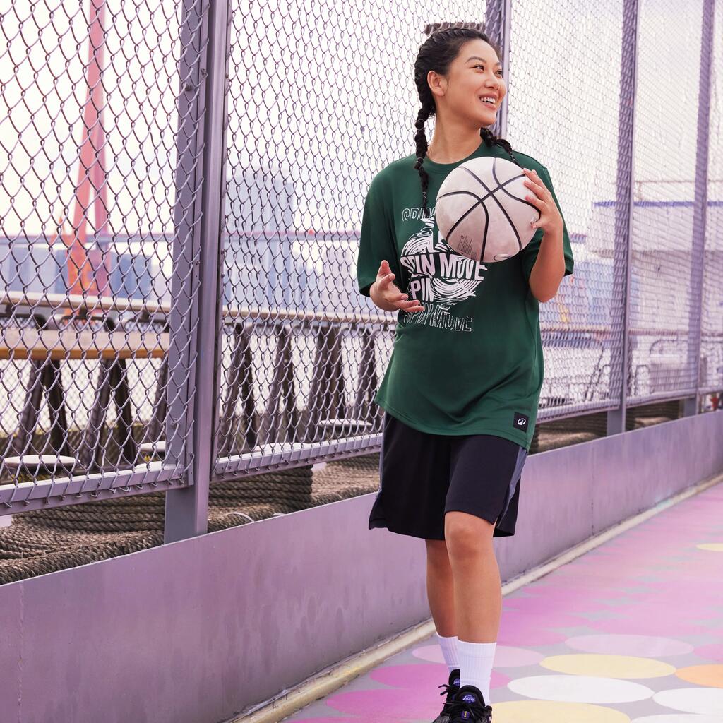 כדורסל במידה 6 המיועד למשחקים בחוץ או בפנים, לבנות בגילי 11 ומעלה, ולבנים בגילי 12-11.