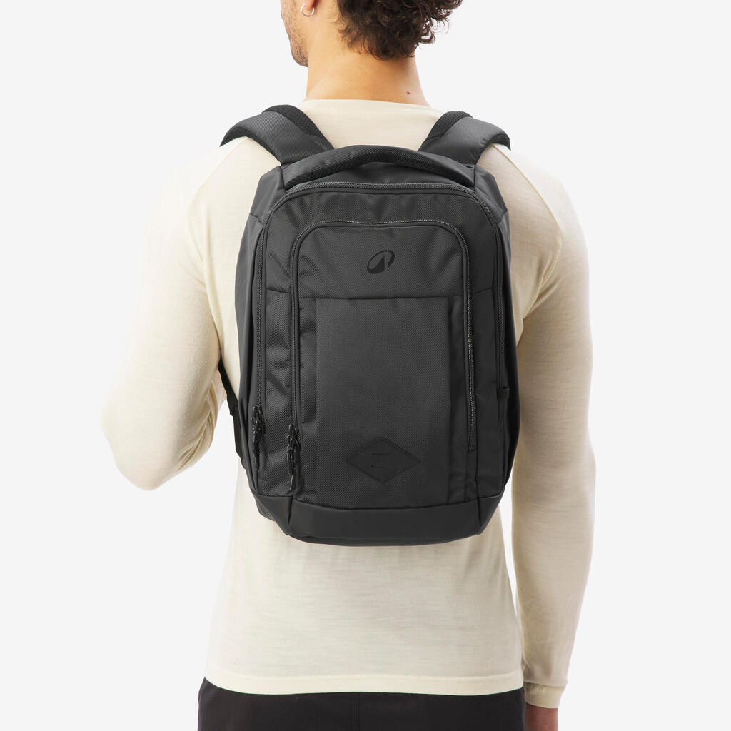 תא מאובטח עיקרי עם רוכסן, כולל 2 כיסים מוגבהים ובולמי זעזועים למחשב נייד בגודל 13 אינץ', ולטאבלט בגודל 10 אינץ'.
