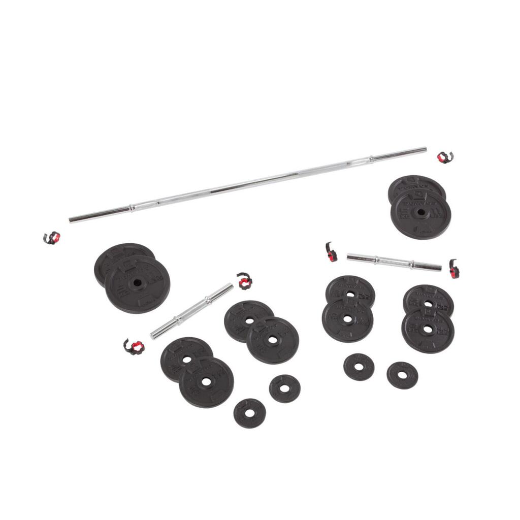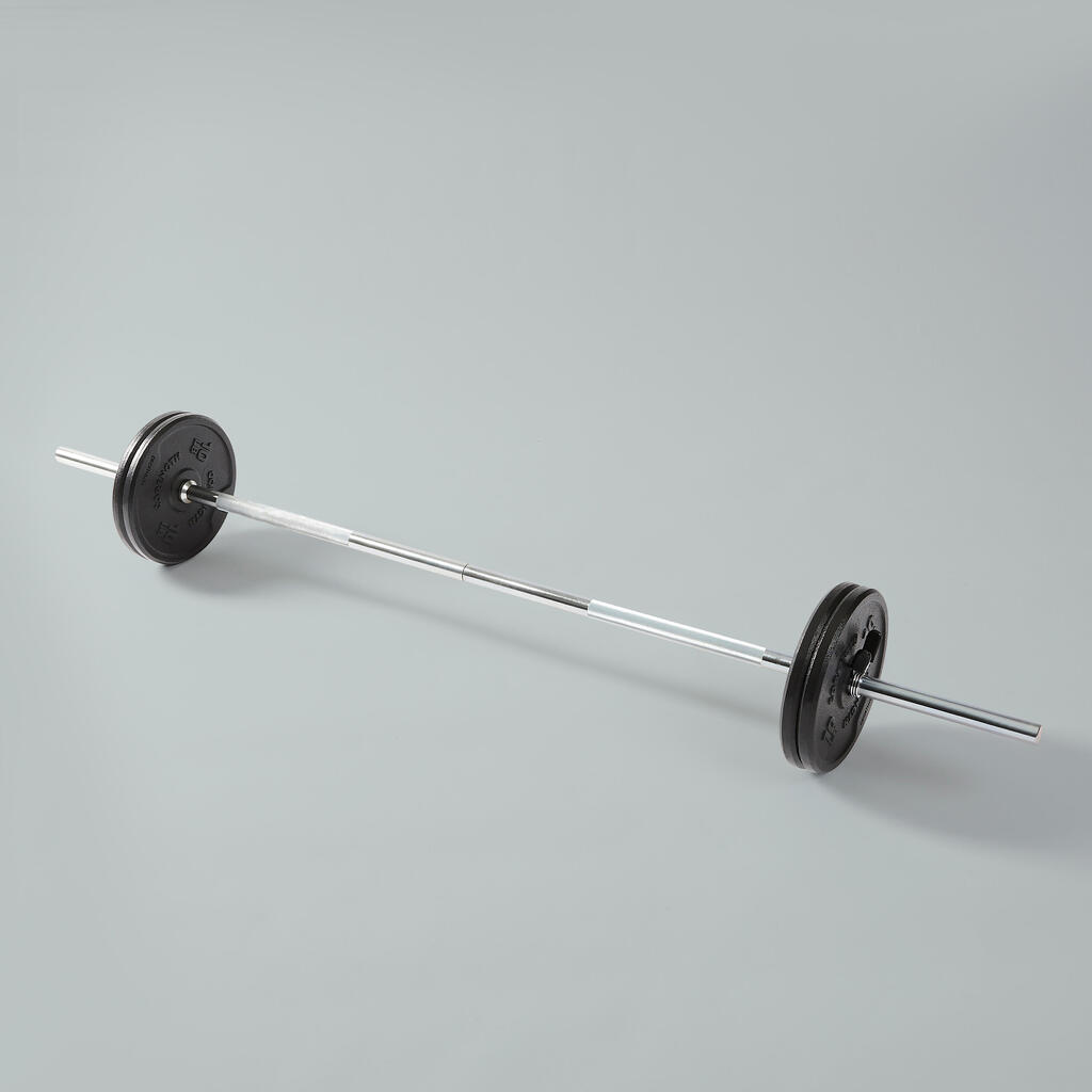 הברזל היצוק קומפקטי יותר מוויניל הודות לצפיפותו. וזה אומר שתוכלו לגוון בקלות את התרגילים שלכם באמצעות הוספה או הסרה של משקל מהמוט.