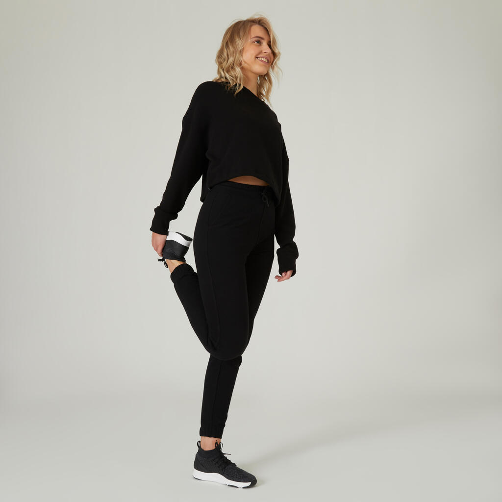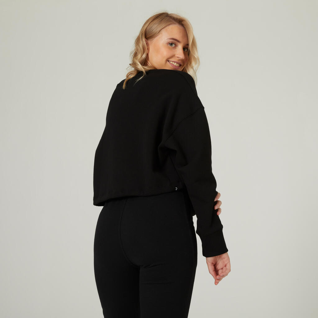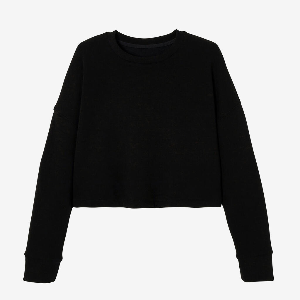 סווטשירט כושר בגזרת בטן לנשים - שחור