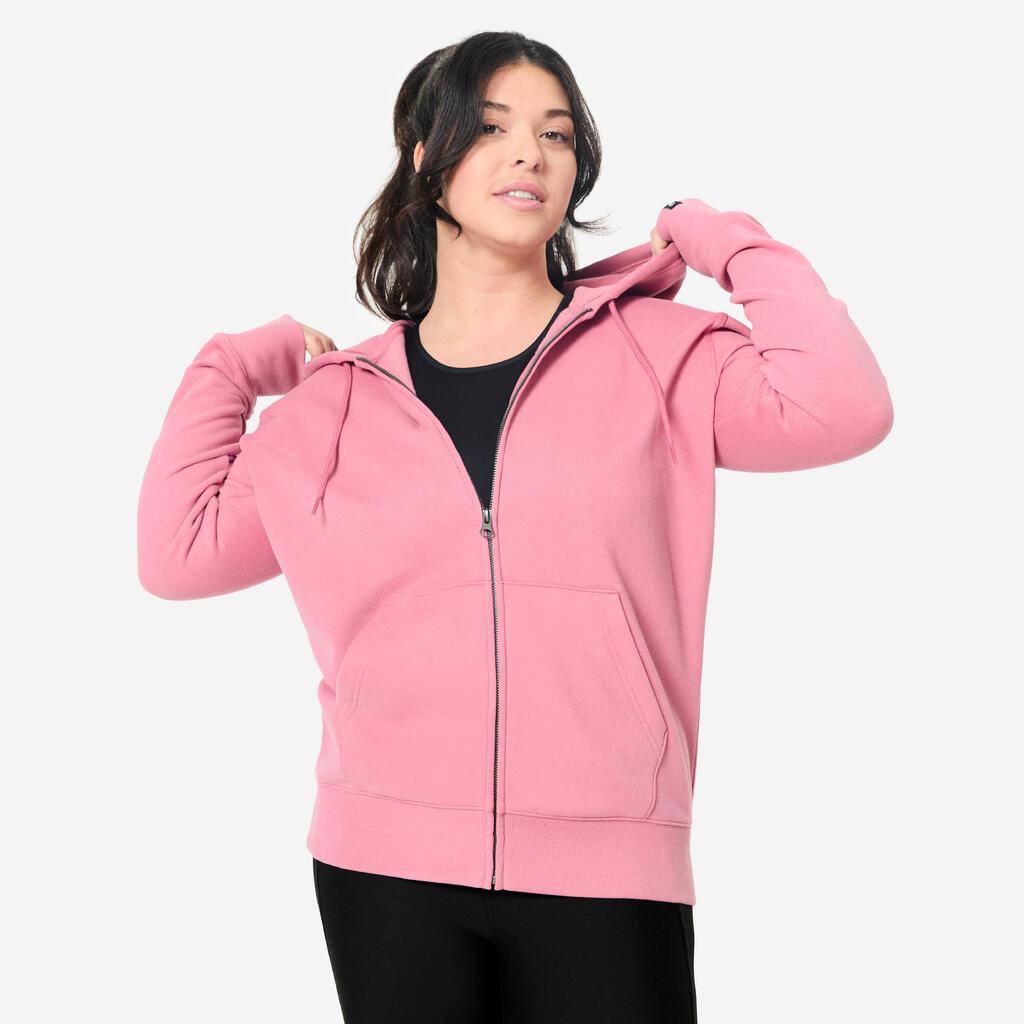 סווטשירט כושר עם רוכסן לנשים, דגם 500 Essentials - ורוד