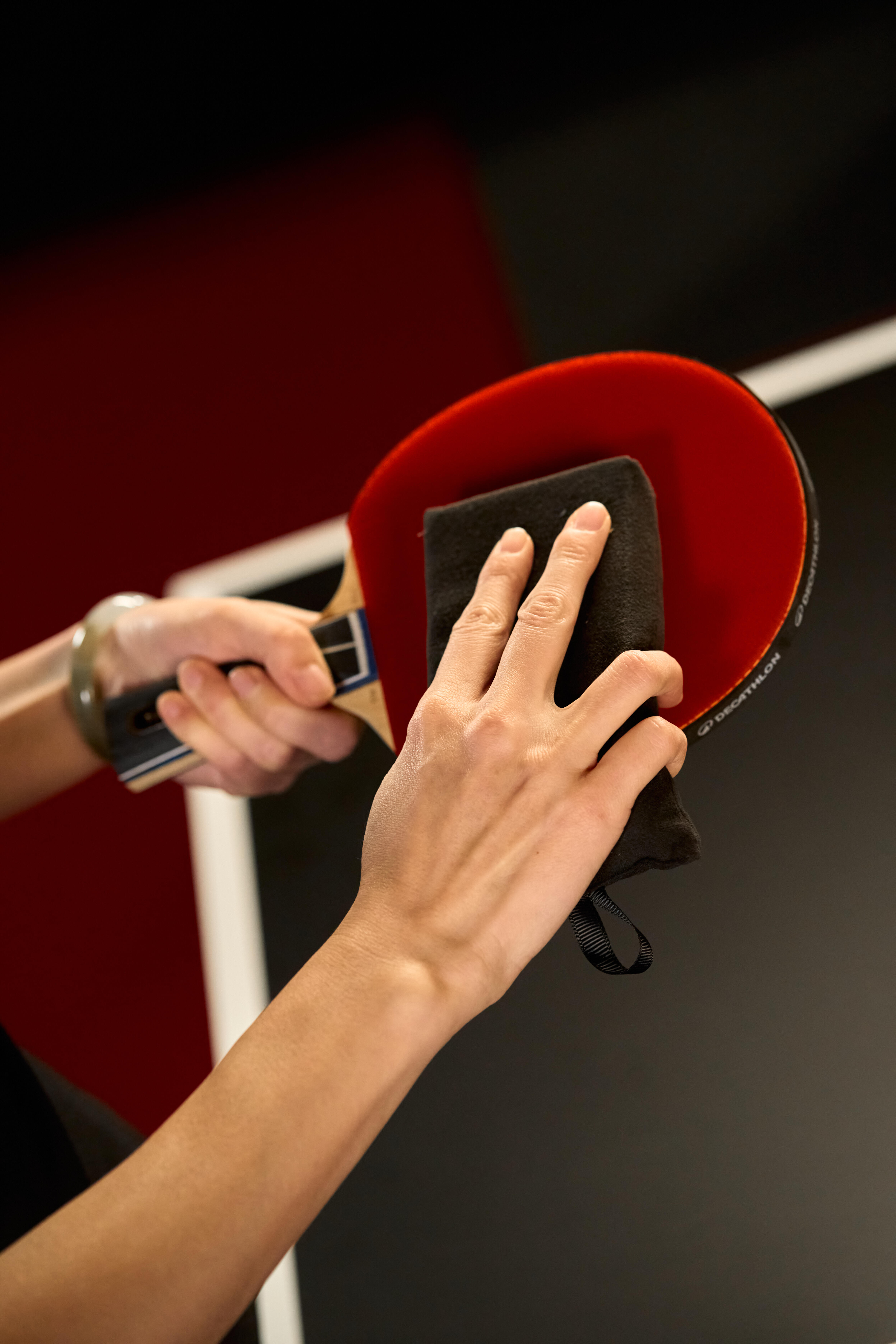 כדי לשפר את העמידות של הציוד, זכרו לנקות את מחבט טניס השולחן באופן קבוע עם מוצרים מתאימים.
