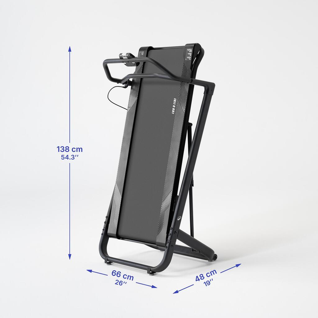 מידות ההליכון במצב מקופל: אורך66 ס"מ x רוחב 63 ס"מ x גובה 138 ס"מ