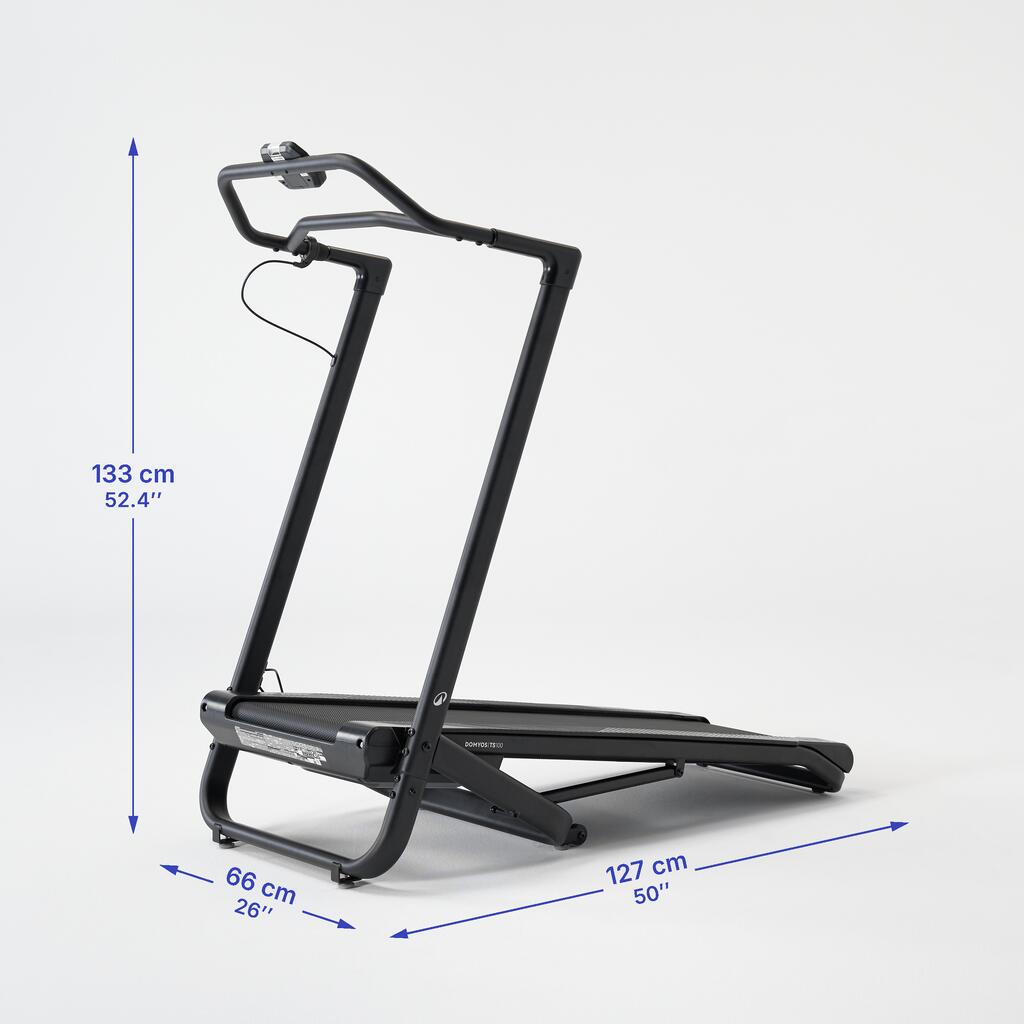 מידות ההליכון במצב פתוח, כשהוא בשימוש: אורך66 ס"מ x רוחב 135 ס"מ x גובה 133 ס"מ