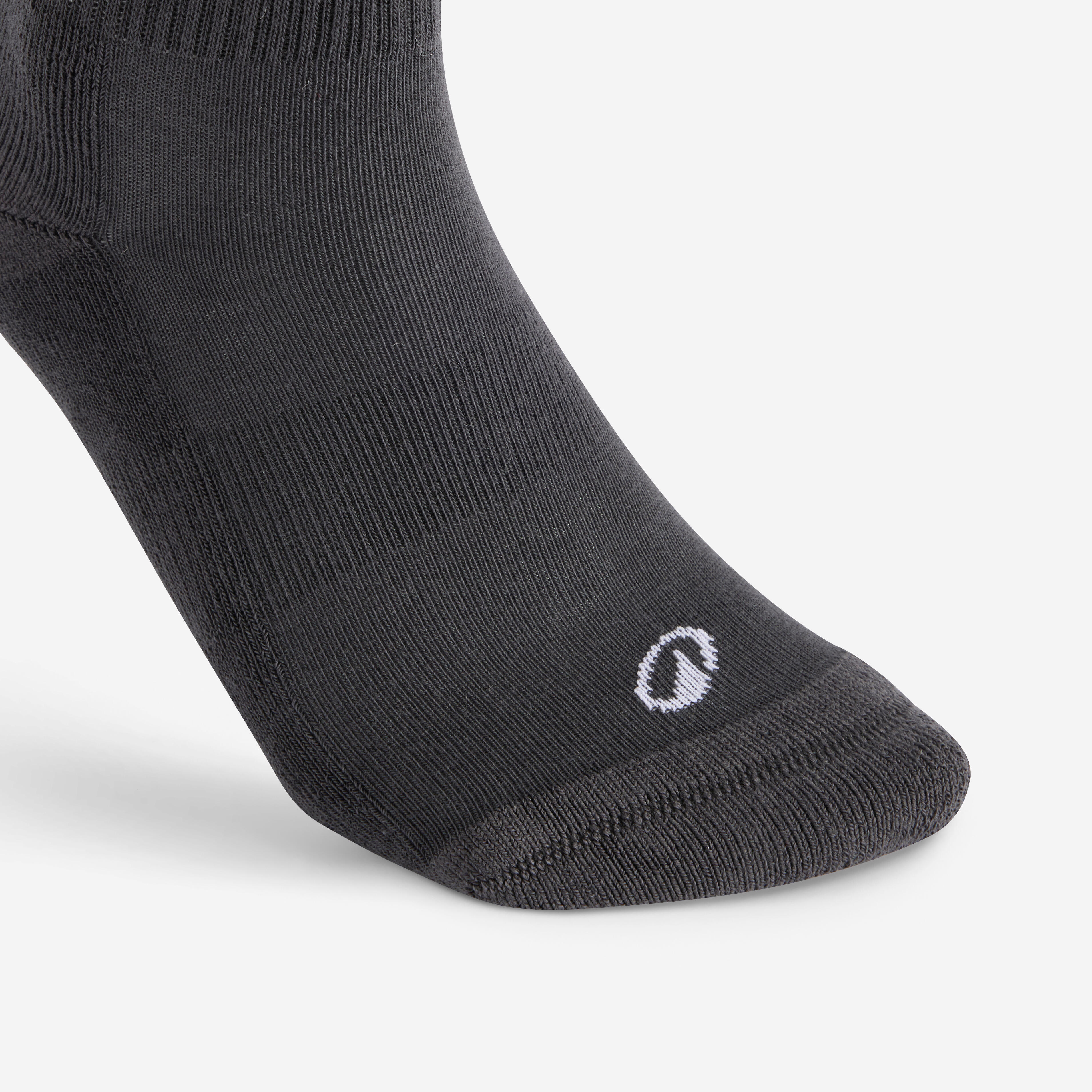 גרבי ספורט עם לולאות קטיפה בתחתית העקב, הבהונות והסוליה. אריג אלסטי לתמיכה במרכז כף הרגל.