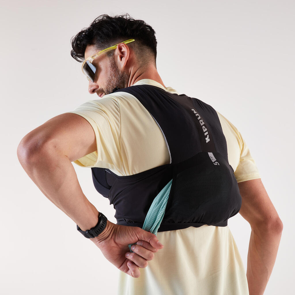 ווסט מחזיק בקבוקי מים לתחרויות ריצת שטח, יוניסקס - Kiprun‎‏ 5 ליטר - שחור