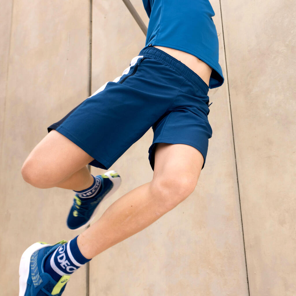מכנסי כושר קצרים מבד טכני ונושם לילדים. מתייבשים במהירות ומתאימים למגוון פעילויות ספורט ופנאי.
