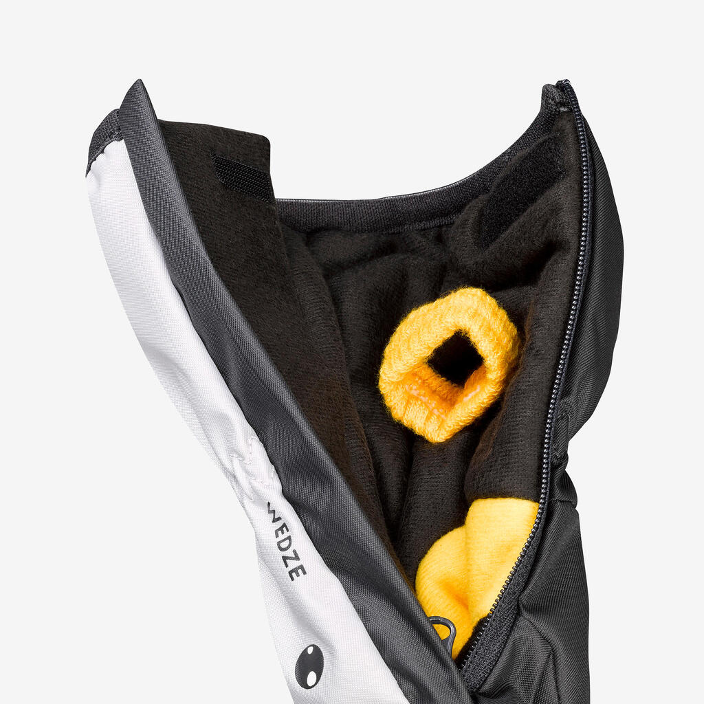 כדי למנוע אובדן של הכפפות, מערכת קליפס מאפשרת לחבר אותן לשרוולי המעיל או חליפת הסקי Decathlon Lugiklip.פשוט חברו בחזרה את החיה הקטנה משמאל, ואז מימין.