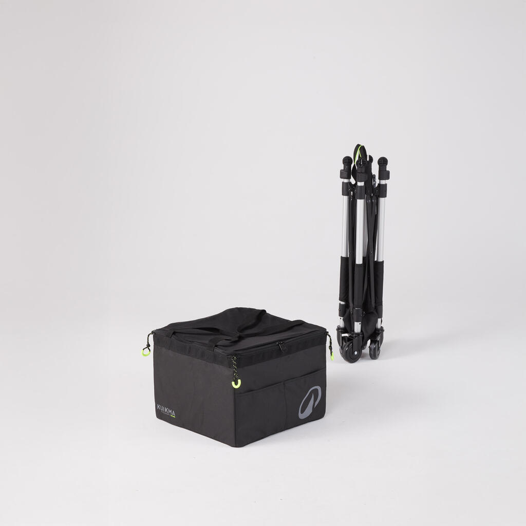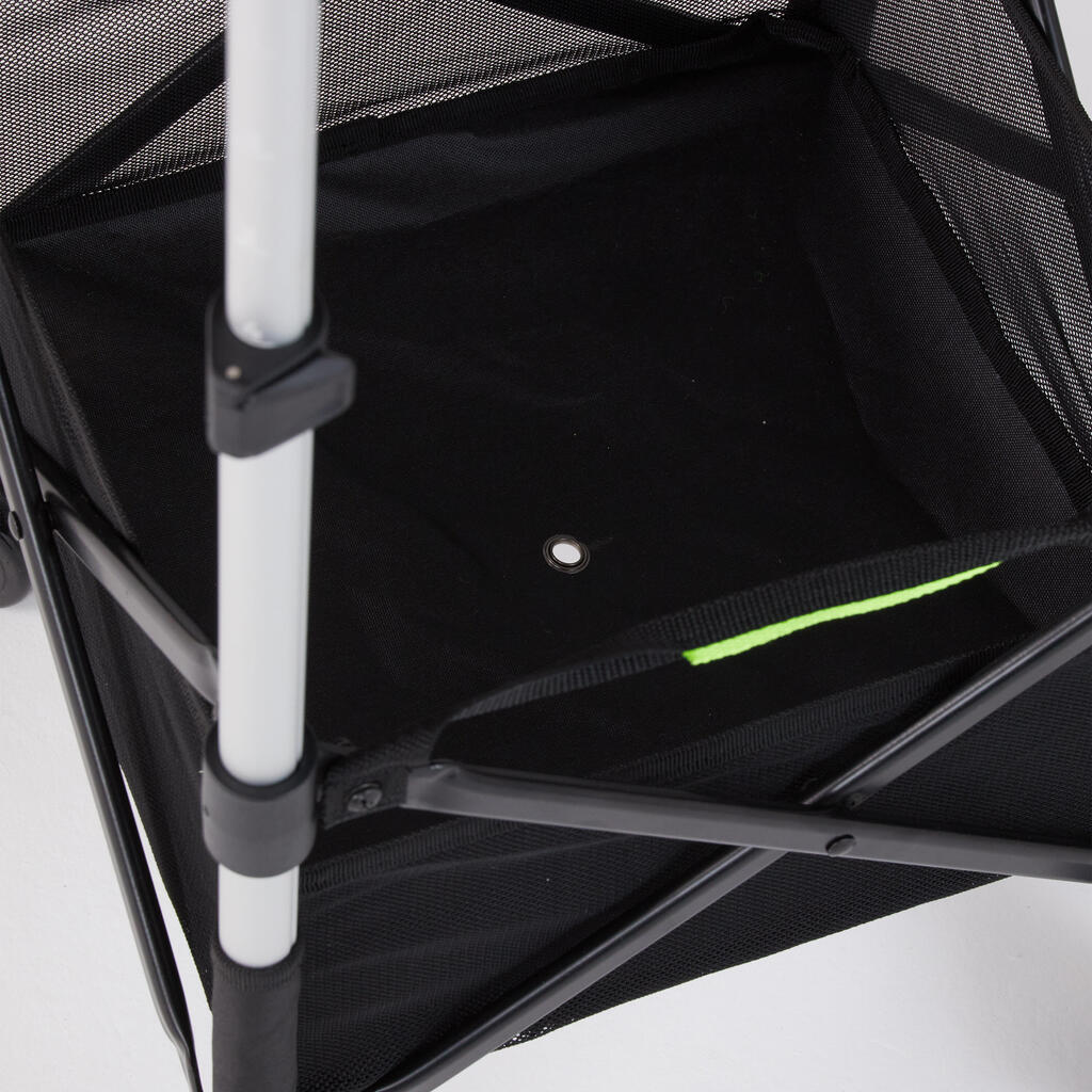 העגלה היציבה והמתקפלת הזאת יכולה להכיל עד 120 כדורים ואביזרים נוספים.