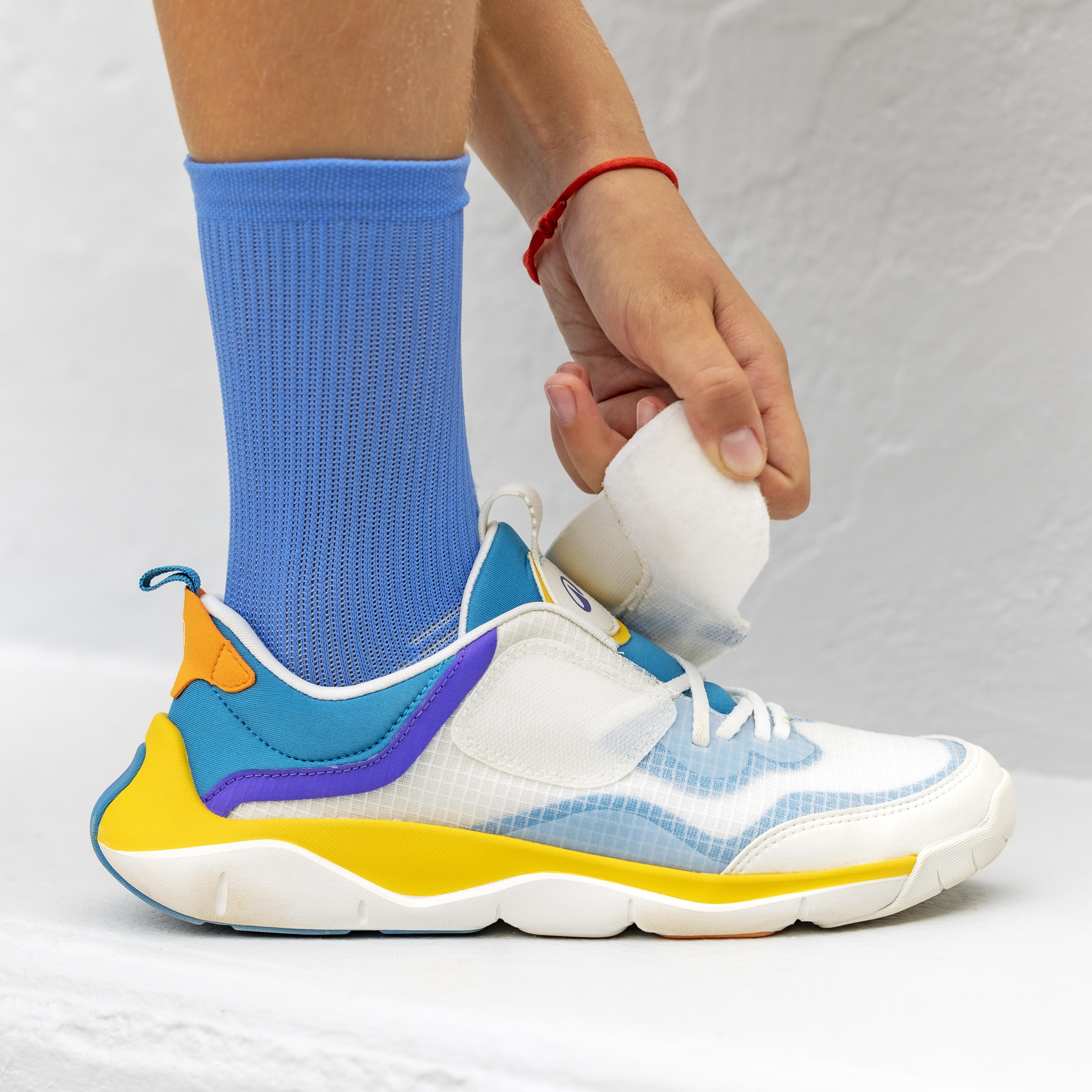 ילדים מלאי אנרגיה יכולים לקחת אותן לכל מקום, בפנים או בחוץ.נעלי Playful City הן כל.כך פרקטיות, אף פעם לא היה כל כך קל לנעול או להוריד אותן בעצמכם.כדי לנעול אותן, פשוט אחזו בשתי פיסות הבד על הלשונית וגב הנעל והפרידו אותן במשיכה. נעילה.אבטחו בעזרת הסקוצ' הפשוט והרחב לאחיזה קלה.כדי להוריד אותן?לחצו על הסוליה המתרוממת בחלק האחורי בעזרת הרגל השנייה וזהו.