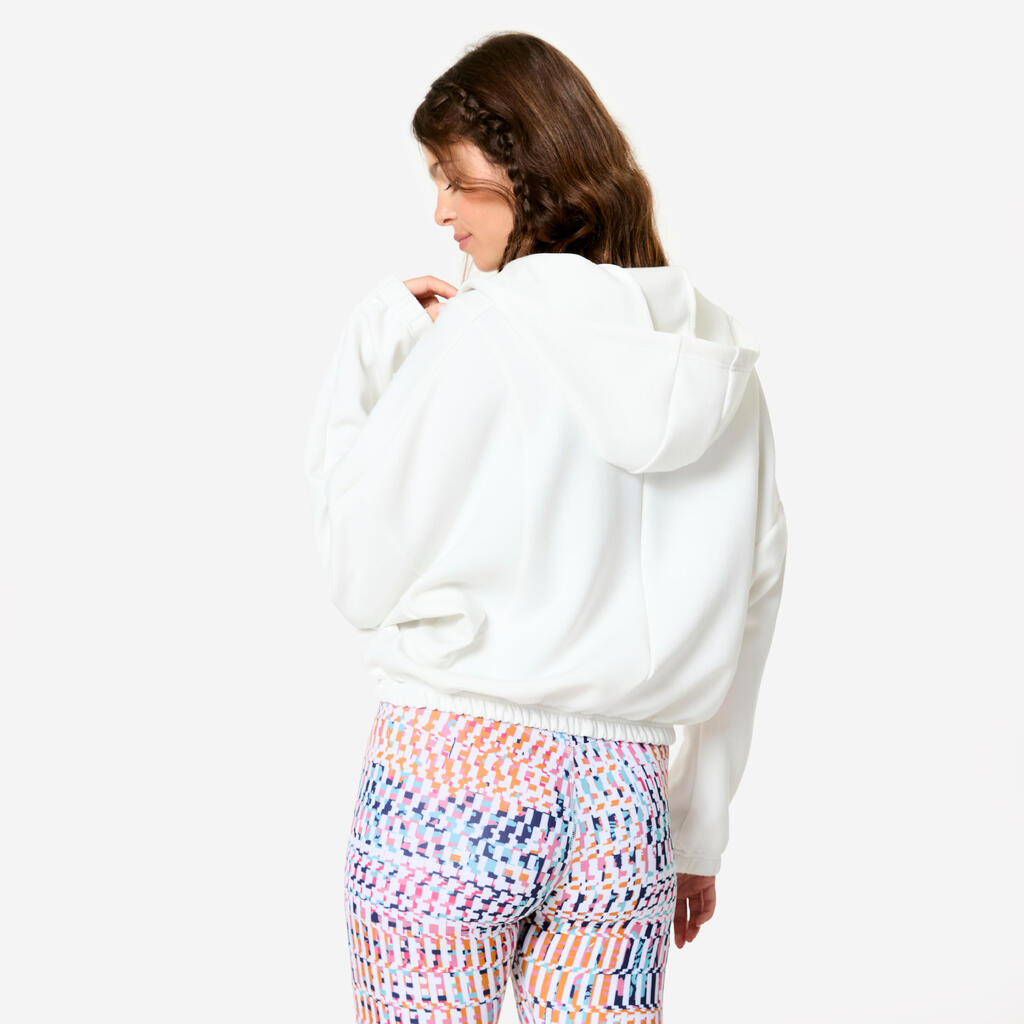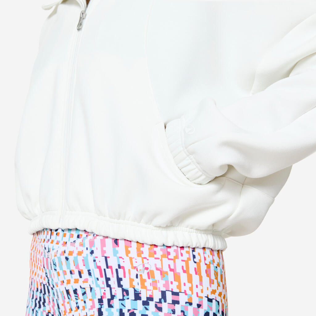 ז'קט לאימוני כושר לנשים עם קפוצ'ון ושרוולים ארוכים - לבן