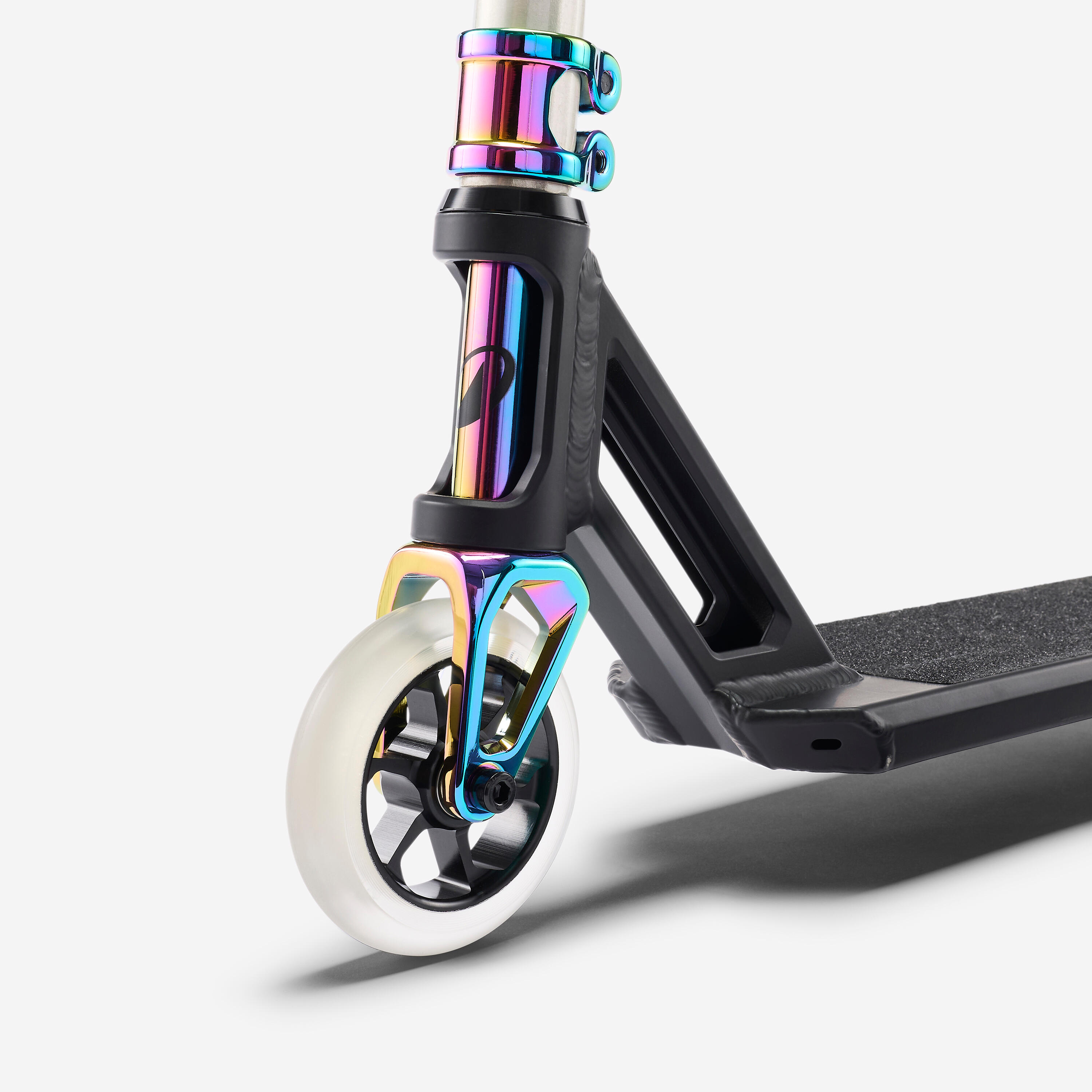 הבחירה במיני HIC עבור הקורקינט הזה אינה מקרית.המערכת עושה שימוש בטריז דחיסה פנימית ובורג כדי למנוע כל מרווח בין המזלג למערכת ההיגוי, בדיוק כמו במערכת HIC סטנדרטית.אבל היא עוצבה במיוחד עבור מזלגים דקים יותר (קוטר סטנדרטי), כך שניתן להשתמש בכידון קל יותר מבלי להתפשר על חוזק.