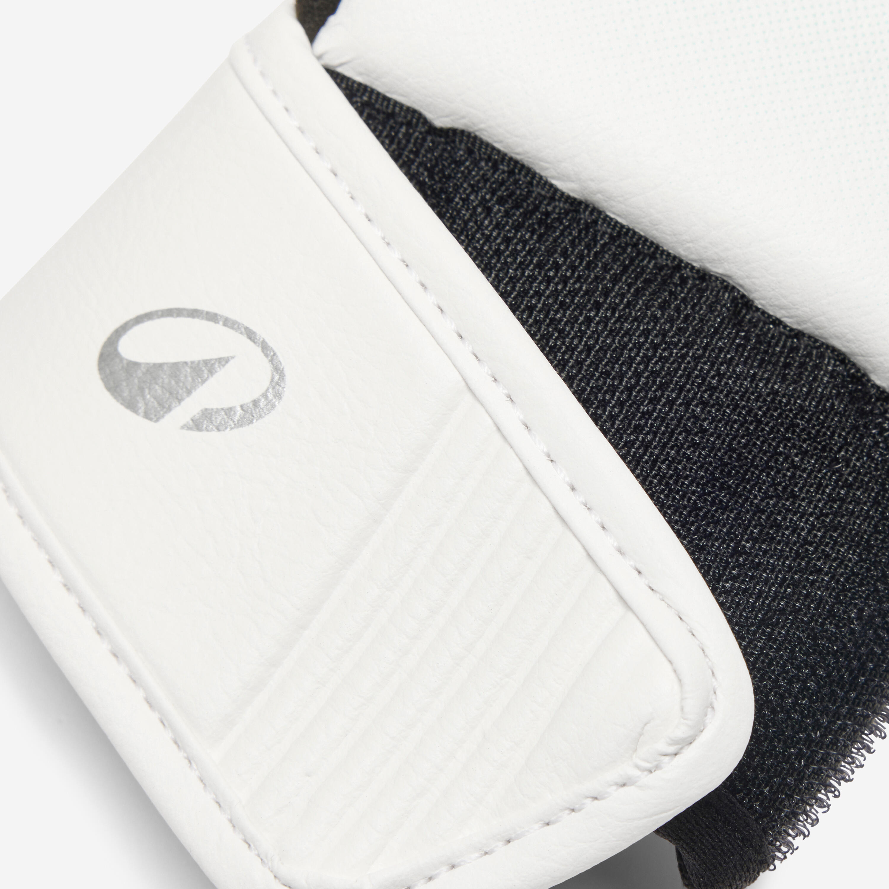 מתקשים להרים משקולות עם כפפות אגרוף? באימוני איגרוף קרדיו מומלץ להשתמש בכפפות קרדיו ולא בכפפות אגרוף רגילות כדי להימנע מהצורך להחליף ציוד בין תרגיל לתרגיל. כפפות קרדיו 100 עם טריז חיזוק באזור כף היד נוחות ומסייעות לידיים רועדות ולתרגילי קרקע (שכיבות שמיכה, ברפיז וכד'). בנוסף, אזור כף היד העשוי מרקם דמוי זמש וגומי מונע זיעה ומאפשר לכף היד לנשום