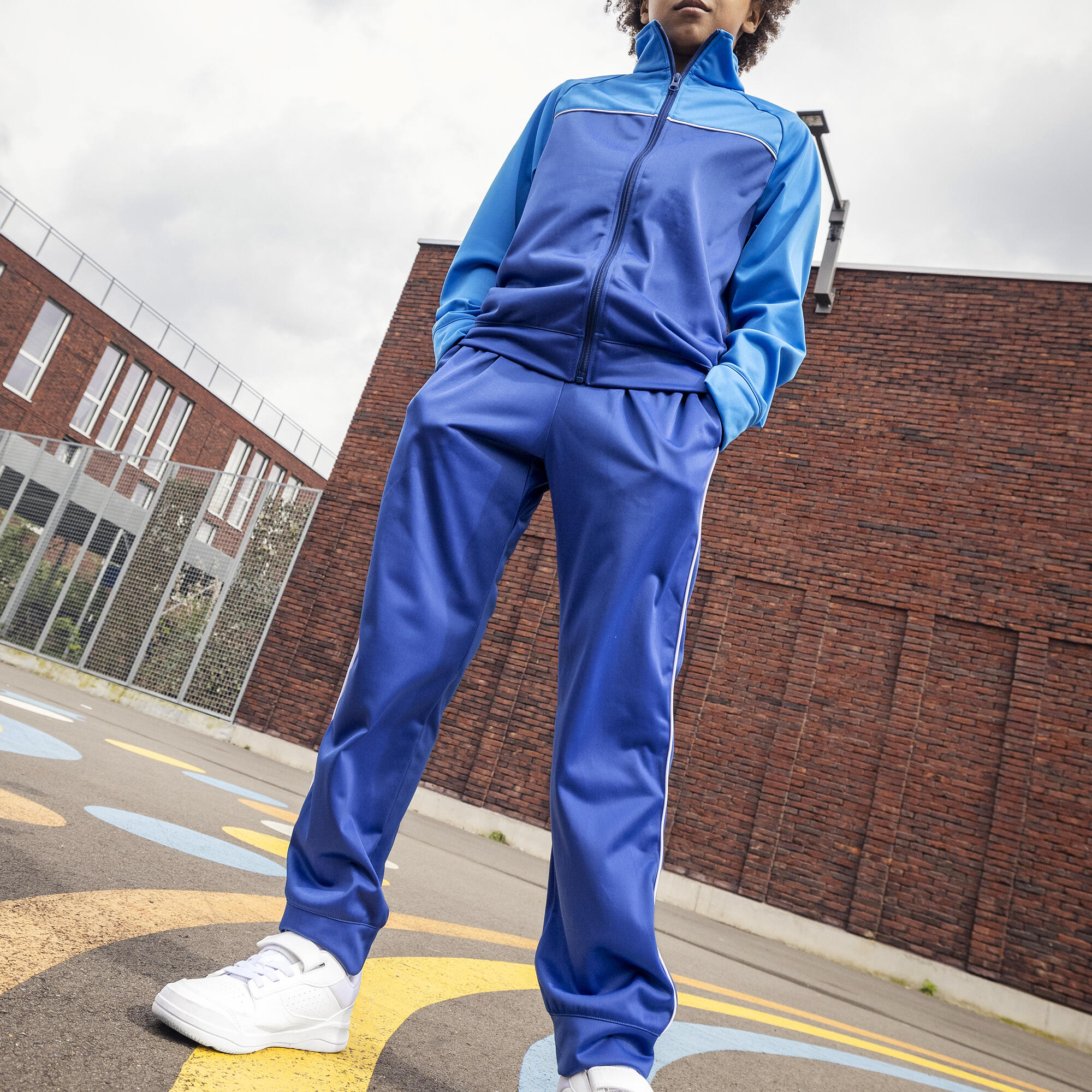 פשוטה ואופנתית גם יחד, חליפת הטרנינג הזו לילדים כוללת מכנסיים וז'קט עם רוכסן. חיונית לספורט בבית הספר!