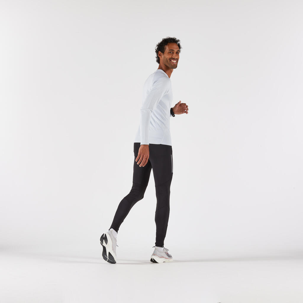 חולצת ריצה ארוכה ללא תפרים לגברים, דגם Kiprun 500 - אפור