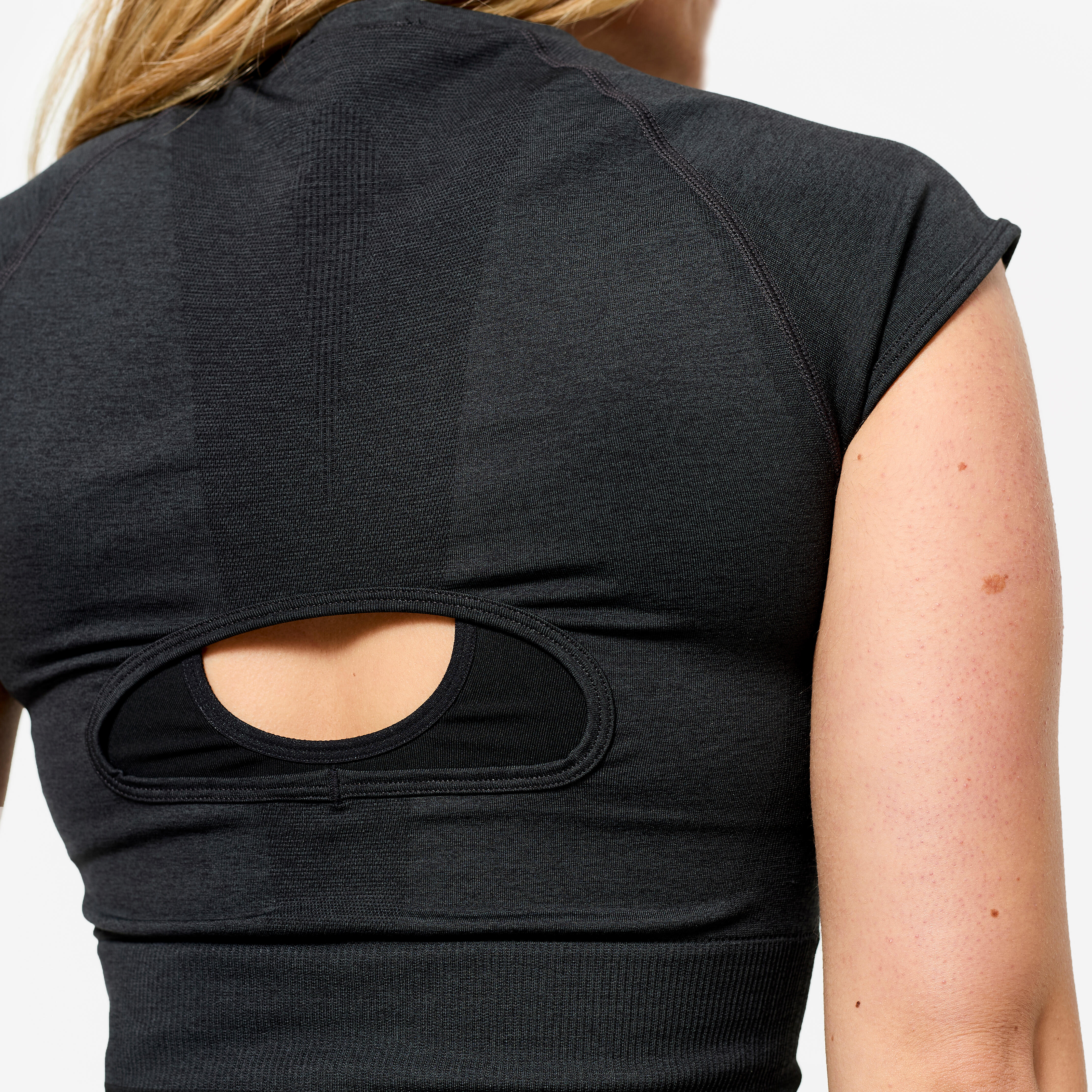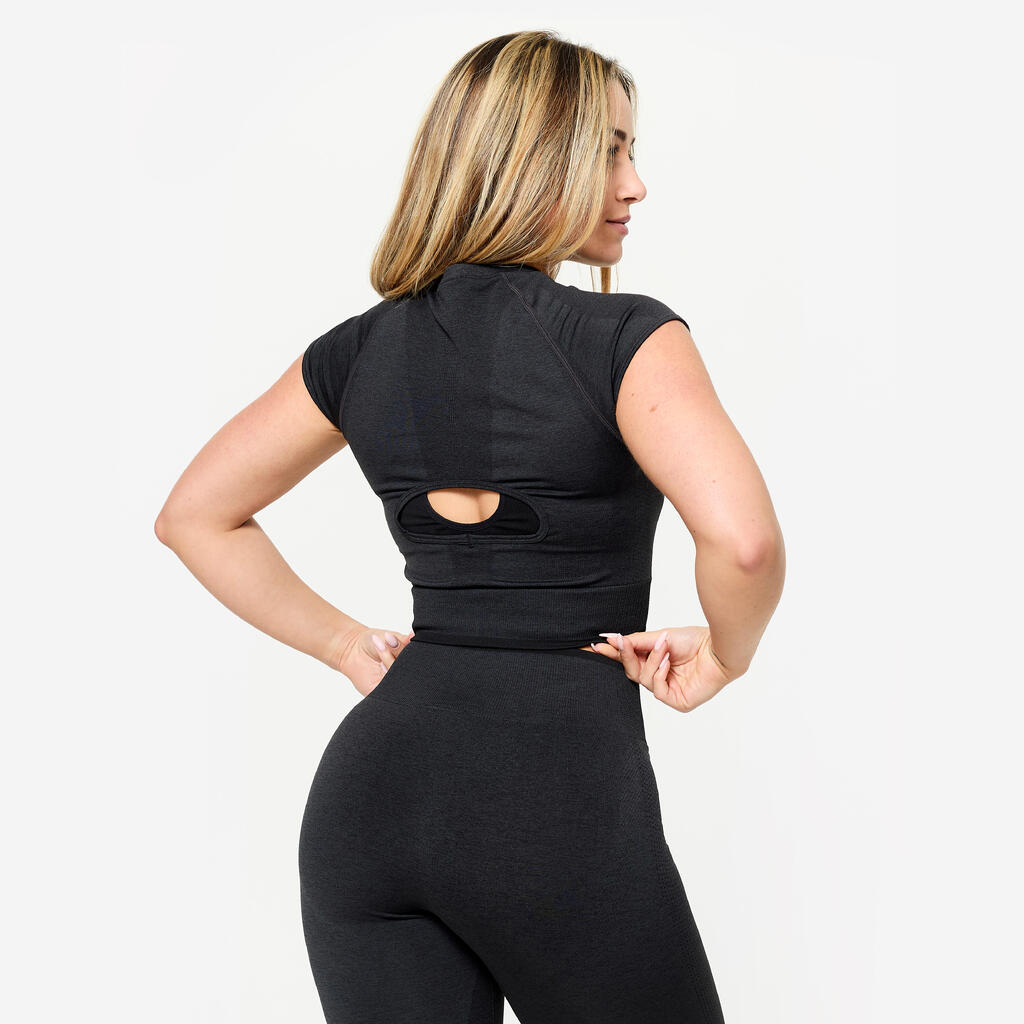 חולצת בטן ללא תפרים לאימוני משקולות לנשים - שחור