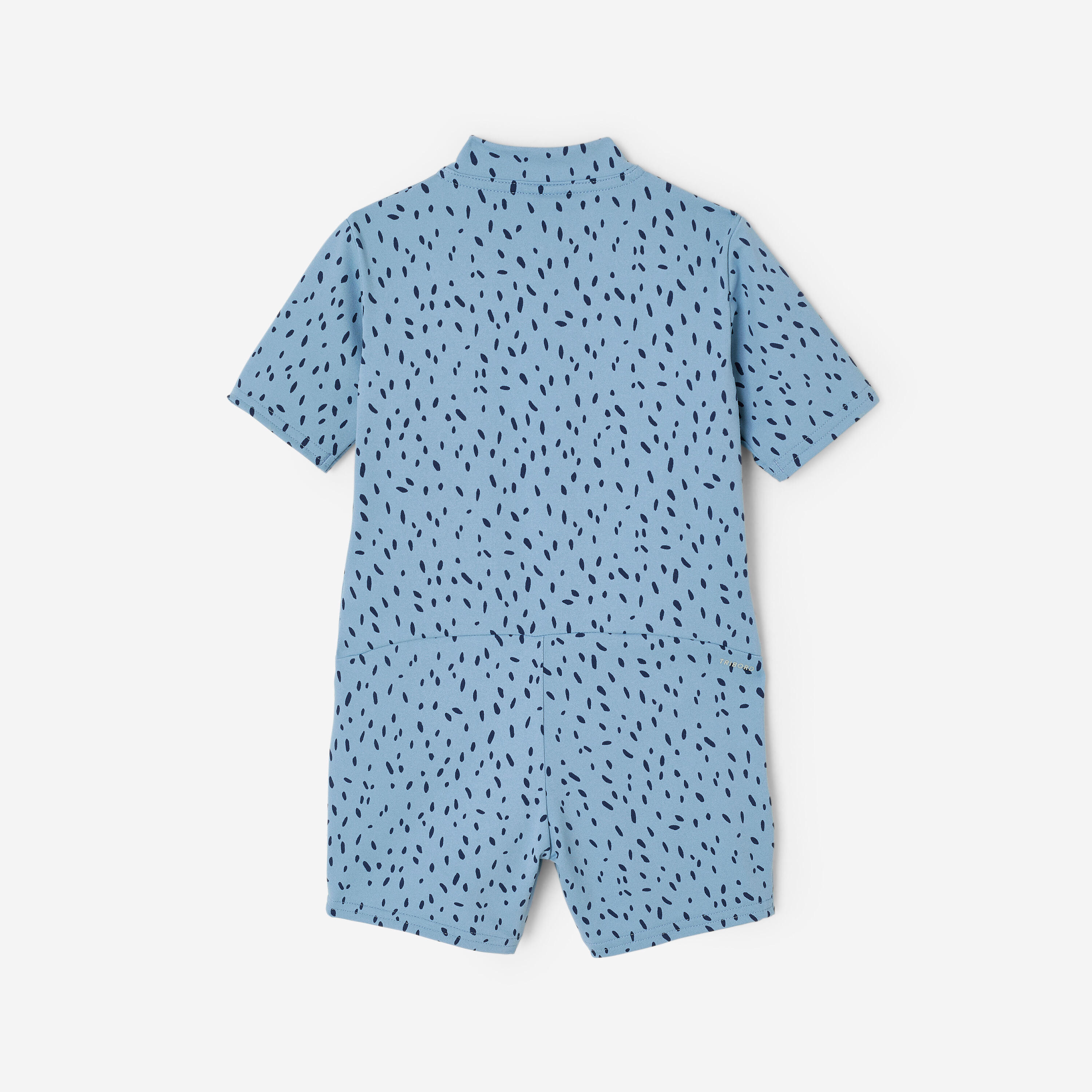 חליפת שחייה צבעונית עם שרוול ומכנס קצר מרכיב שמספק הגנה מפני קרינת UV, גם כשהוא רטוב! קל ללבוש אותה הודות לרוכסן קדמי ולחצניות במפשעה.