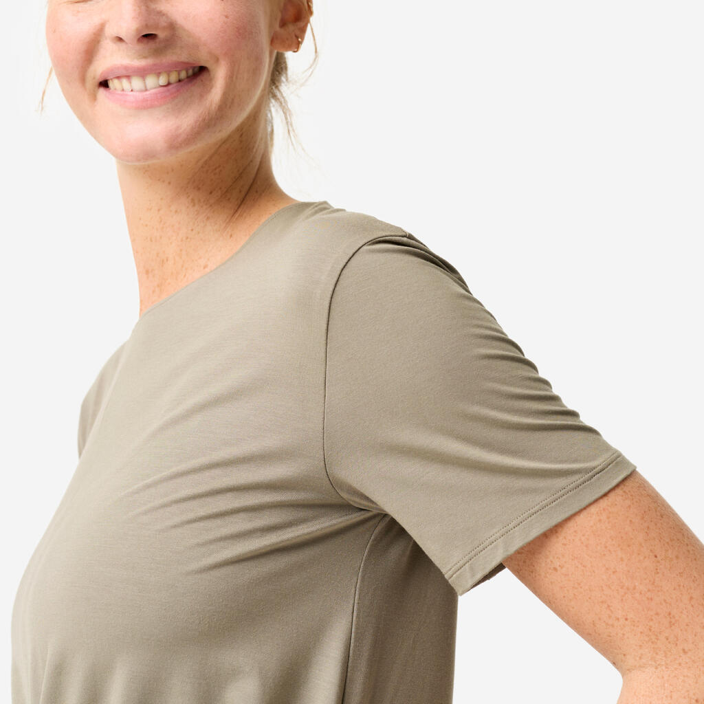 אפילו עם הסיבים הטבעיים, הבד שומר על מתיחה ועוקב אחרייך בתנועה. הגמישות הזו חשובה באימונים עדינים כמו יוגה, פילטיס ומתיחות. הבד נמתח וחוזר באופן טבעי לצורתו המקורית מבלי ליצור לחץ שיפריע לאימון שלך.