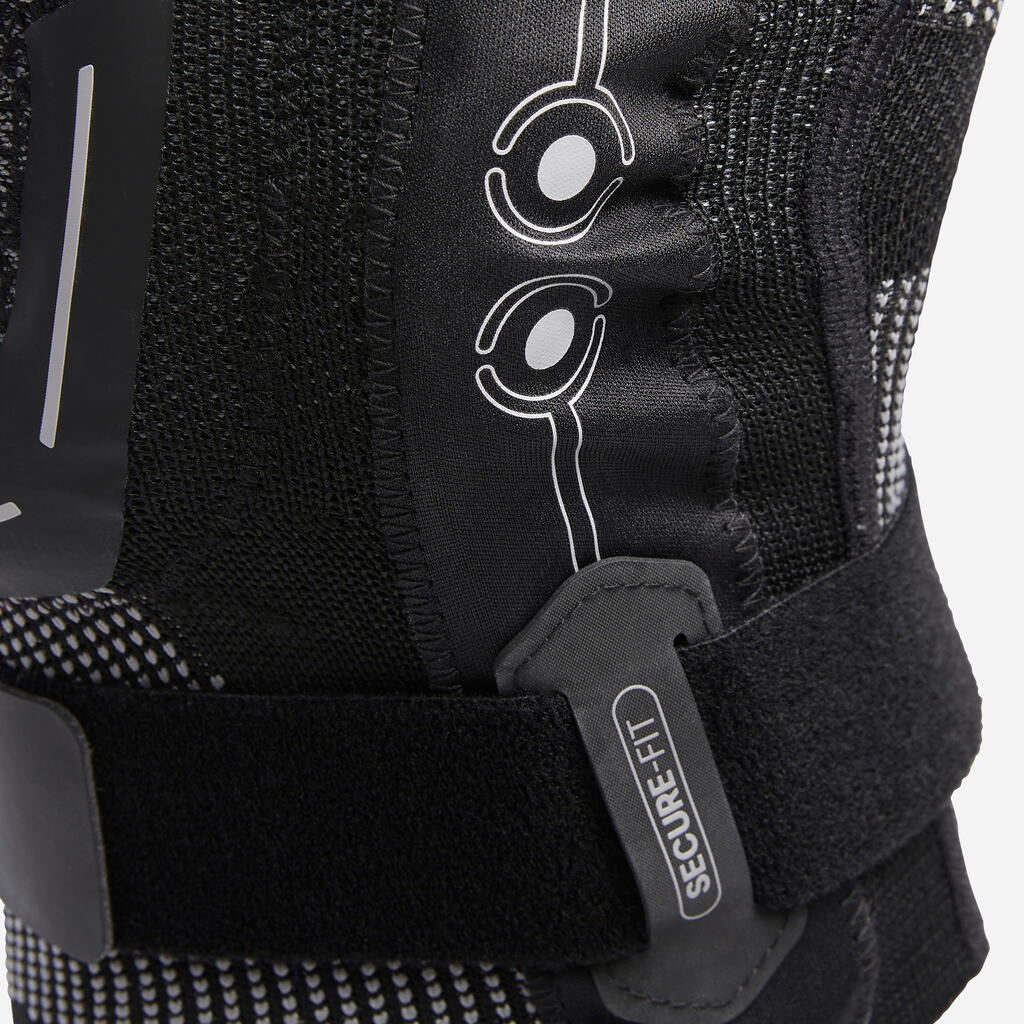 אריג לחץ, שתי רצועות הידוק, חיזוקים צדדיים סביב המפרק וטבעת סיליקון סביב הפיקה לתמיכה משופרת.נמכרים בנפרד.