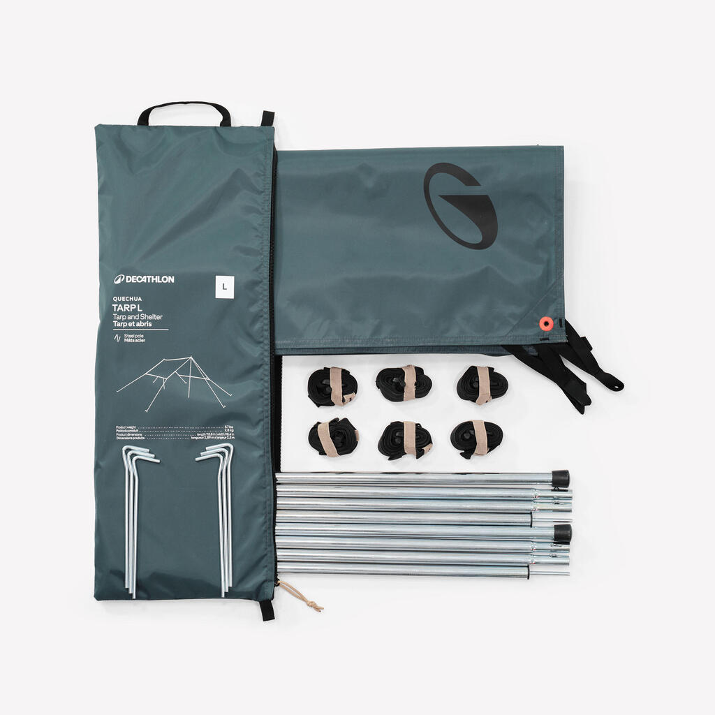 יריעת ברזנט במידה L בהרכבה פשוטה, מספקת לכם שטח מוגן של 7 מ"ר. היא מגינה עליכם מפני הגשם והשמש.