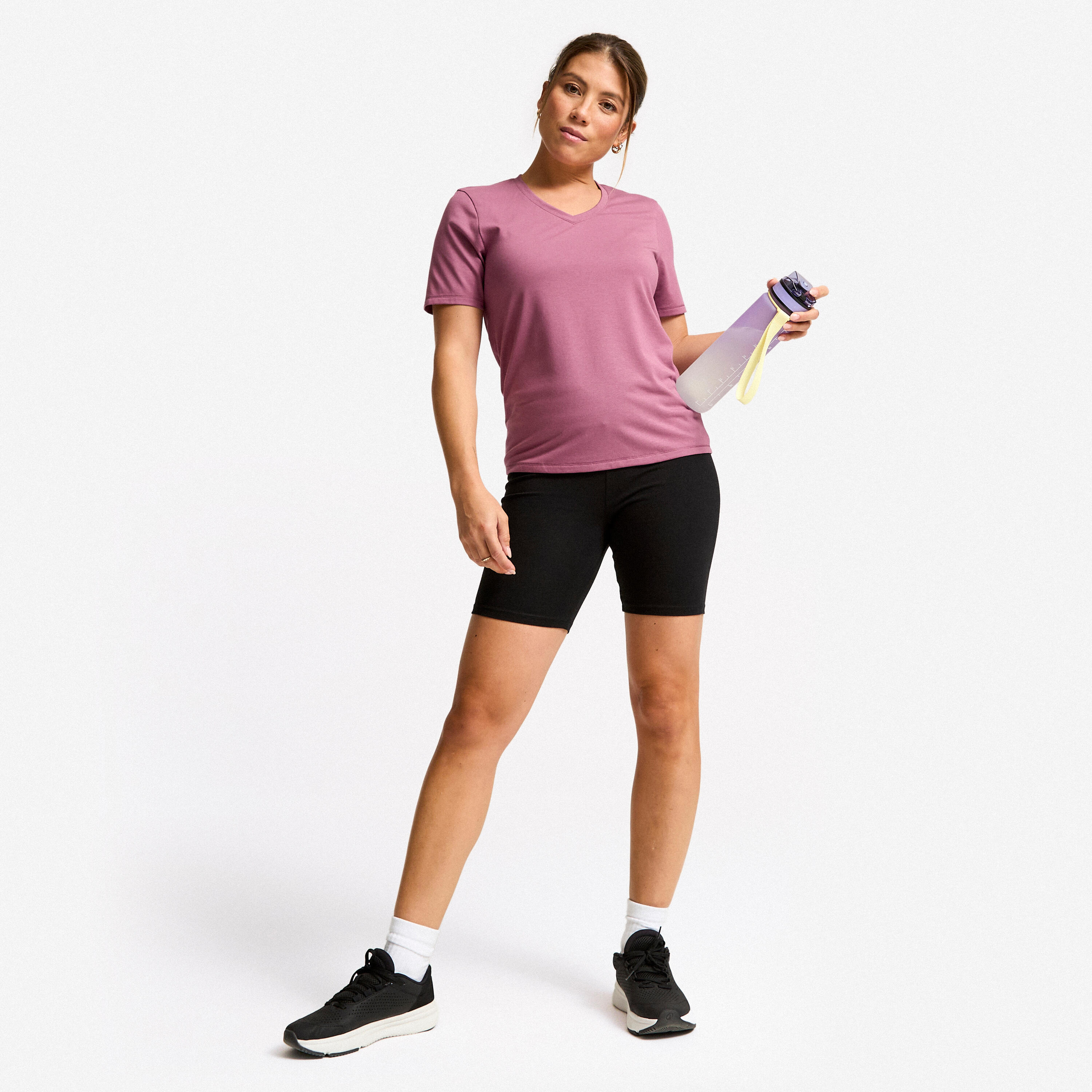 צווארון V מעניק טאץ' נשי עם גזרה ישרה. ‎30% סיבי מודל מספקים תחושה זורמת ורכה. סיבי COOLMAX® שומרים על קרירות ויובש הגוף במהלך האימון.